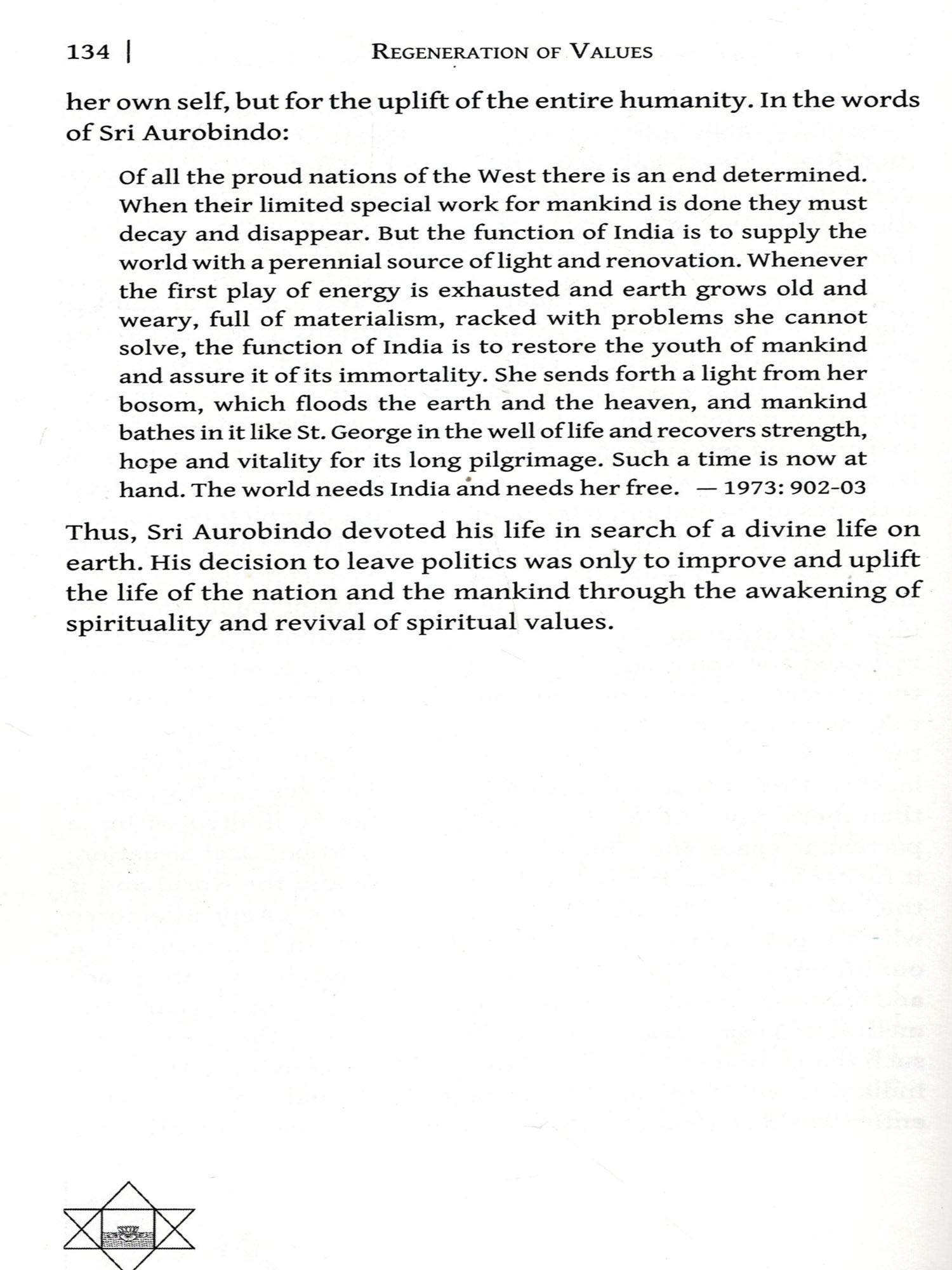 THE importance of the regeneration of values upheld by Mahatma Gandhi and Sri Aurobindo in the contemporary world is paramount. I would like to begin with a prefatory outline of the background behind the thought of publishing this book on the concept of values of Mahatma Gandhi and Sri Aurobindo. It was primarily my interest in social and political philosophy that generated in me the desire to work on such an issue related to the good and well-being of the human life and society. This desire was further intensified by the socio-political turmoil that we are experiencing in every sphere of our individual and social lives. In this regard I felt that the revival of the thoughts and values of some of the great leaders and thinkers of India during the nineteenth-twentieth century like Rabindranath Tagore, Swami Vivekananda, Mahatma Gandhi and Sri Aurobindo could show us some ways to uplift ourselves as well as combat and overcome the current social problems. Therefore, here is my humble attempt to concentrate upon some of the important and relevant thoughts and values suggested by Mahatma Gandhi and Sri Aurobindo.