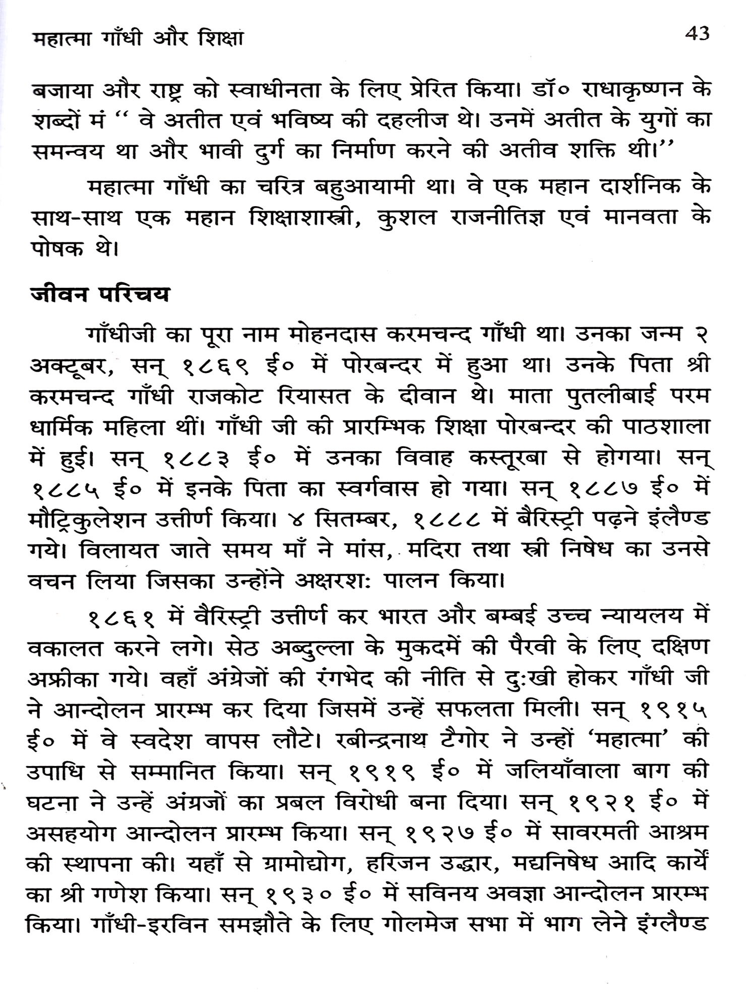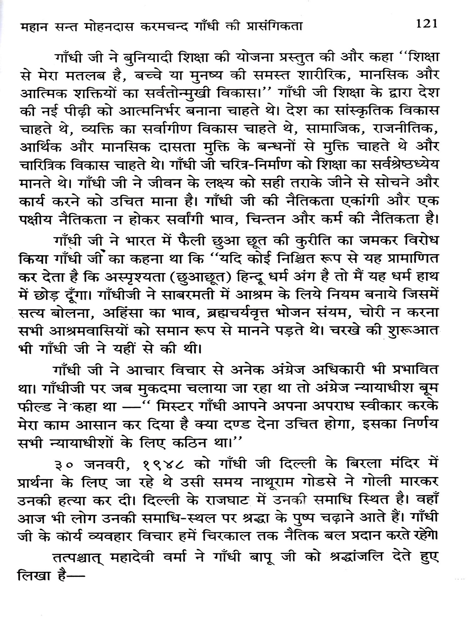 प्रस्तुत ग्रन्थ भारतीय स्वाधीनता एवं उसके नव निर्माण में महात्मा गाँधी के व्यक्तित्व का सविस्तार अध्ययन है जो राजनीति, इतिहास एवं ऐतिहासिक अध्ययन के अध्येताओं एवं अन्वेषकों के लिये प्रेरणाप्रद है।