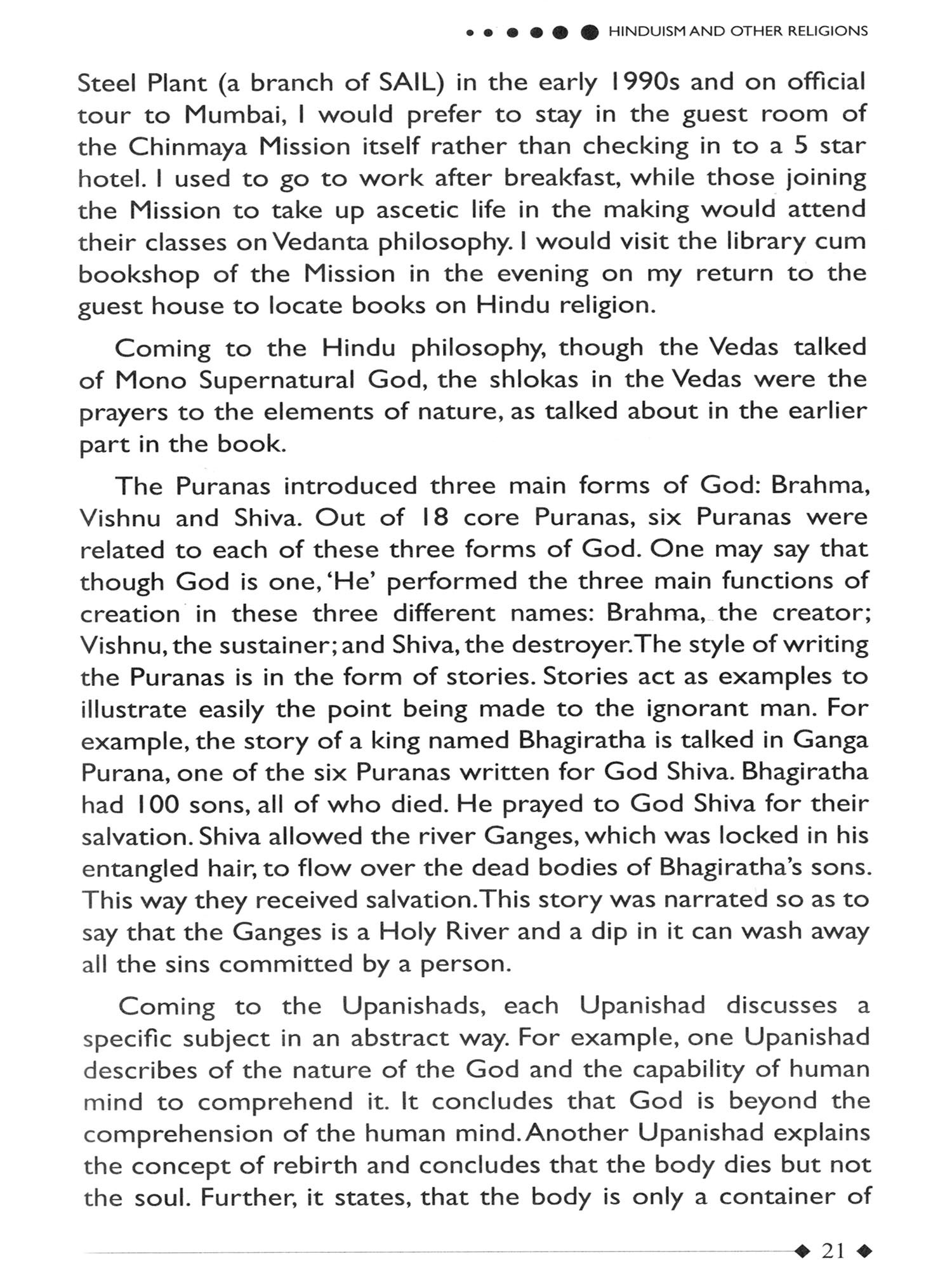 A self-proclaimed atheist, Dr Singh meticulously traces the origins of various religions over the centuries. He very tactfully brings out the strengths and weaknesses of various religions while promulgating the philosophy of 'equal respect for all religions while believing and practicing one religion'.