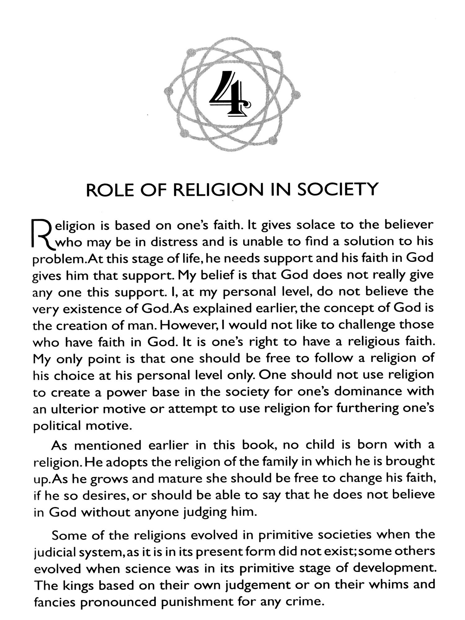 As different religions having different rituals and even differ on the concept of God, I conclude that religions divide the society as against science uniting the same. Religious fanaticism is now a major threat to the whole world. Corruption has spread like white ants in India and it is pervading all across the society. Poverty is a curse for Indian masses. Adoption of technological developments backed by the implementation of the policy of inclusive growth only can remove poverty, corruption and religious fanaticism from the society.