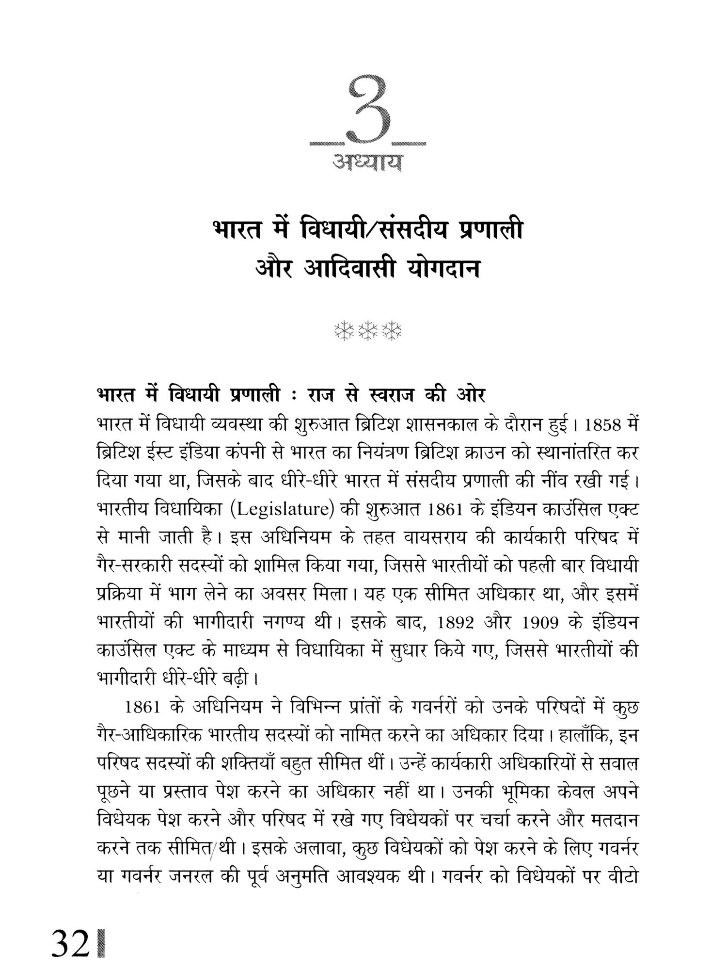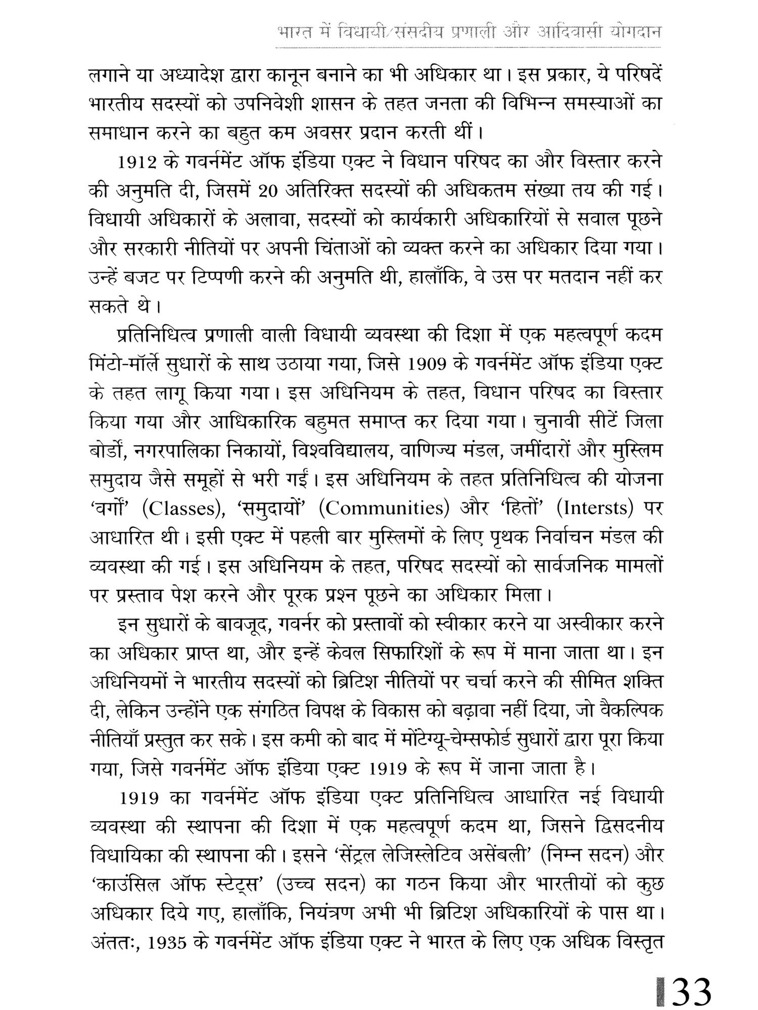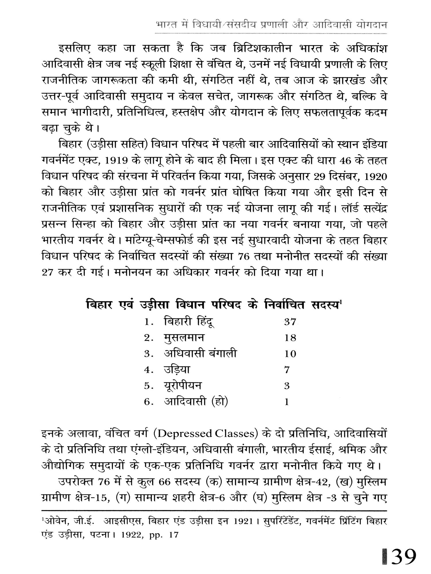 1909 में जब भारत को गढ़ने की नई विधायी प्रक्रिया शुरू हुई तो अन्य देशवासियों के साथ-साथ आदिवासियों ने भी इसका स्वागत किया। नया देश कैसा होगा, लोगों के अधिकार क्या होंगे, क्या कर्तव्य होंगे, हमारा संविधान कैसा होगा,