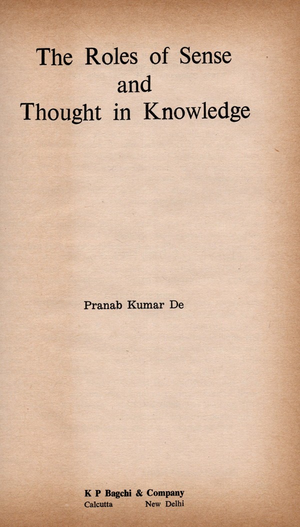 It is a pleasure to be able to thank those who have encouraged me to complete this work. My first and greatest obligation is to my revered teacher, Dr. K. C. Gupta, Reader (Retired), University of Calcutta, who gave me immense inspiration to write and also to avoid mistakes and imperfections both of language and argument. I am deeply indebted to my venerable teacher, Dr. T. S. Bhattacharya, Principal, Govt. Sanskrit College (Retired), who had always been very kind to me and had kindly read this work in typescript. The original title of my thesis was "Role of Sense and Thought in Knowledge". But I now think that the title "The Roles of Sense and Thought in Knowledge" would be more appropriate. Hence I have deliberately made this change of title.