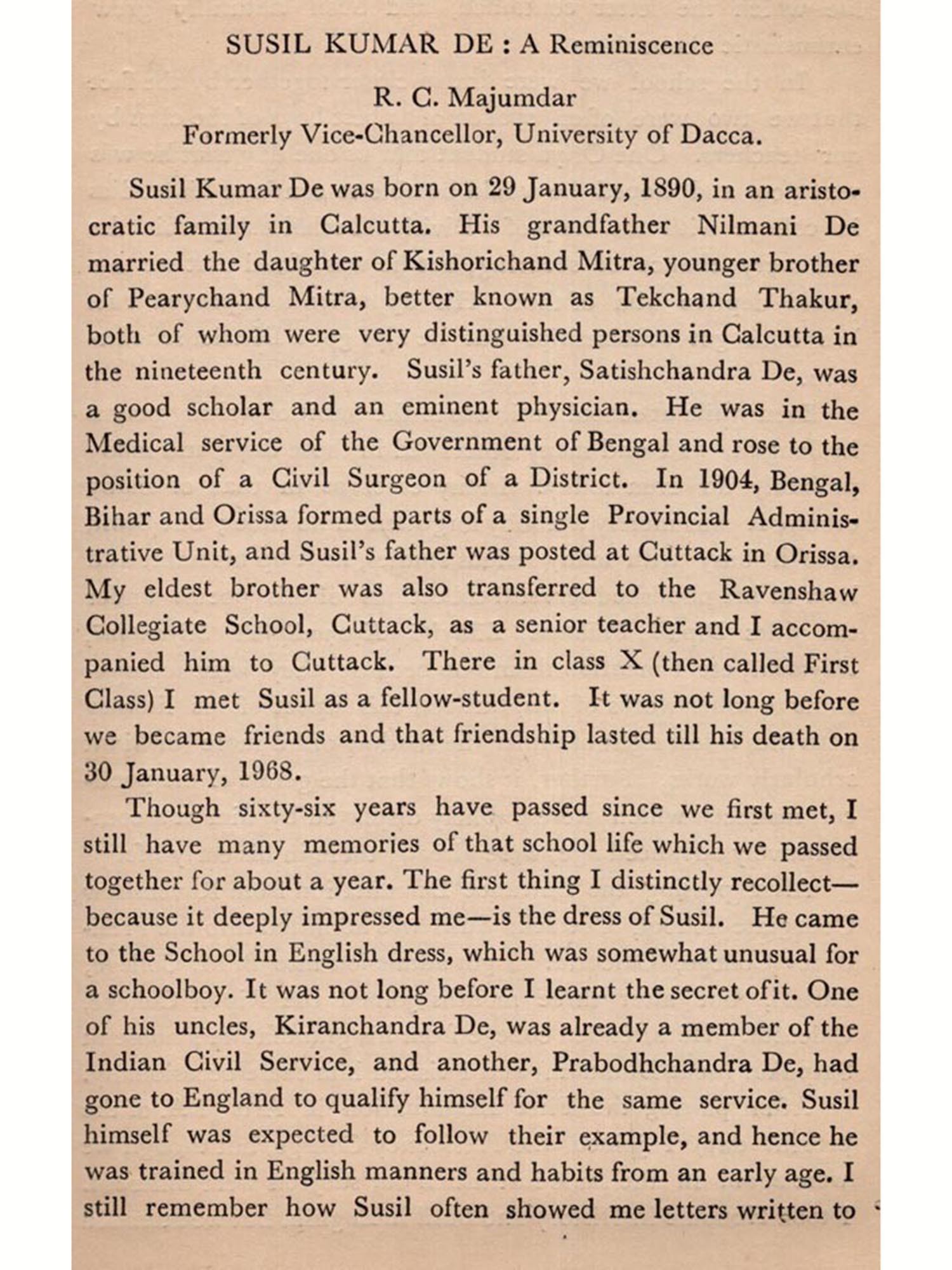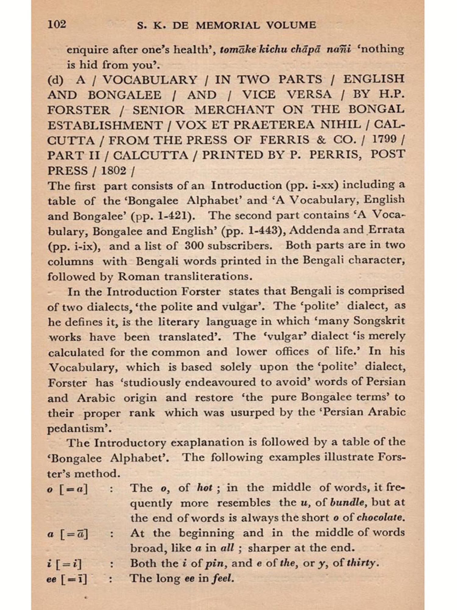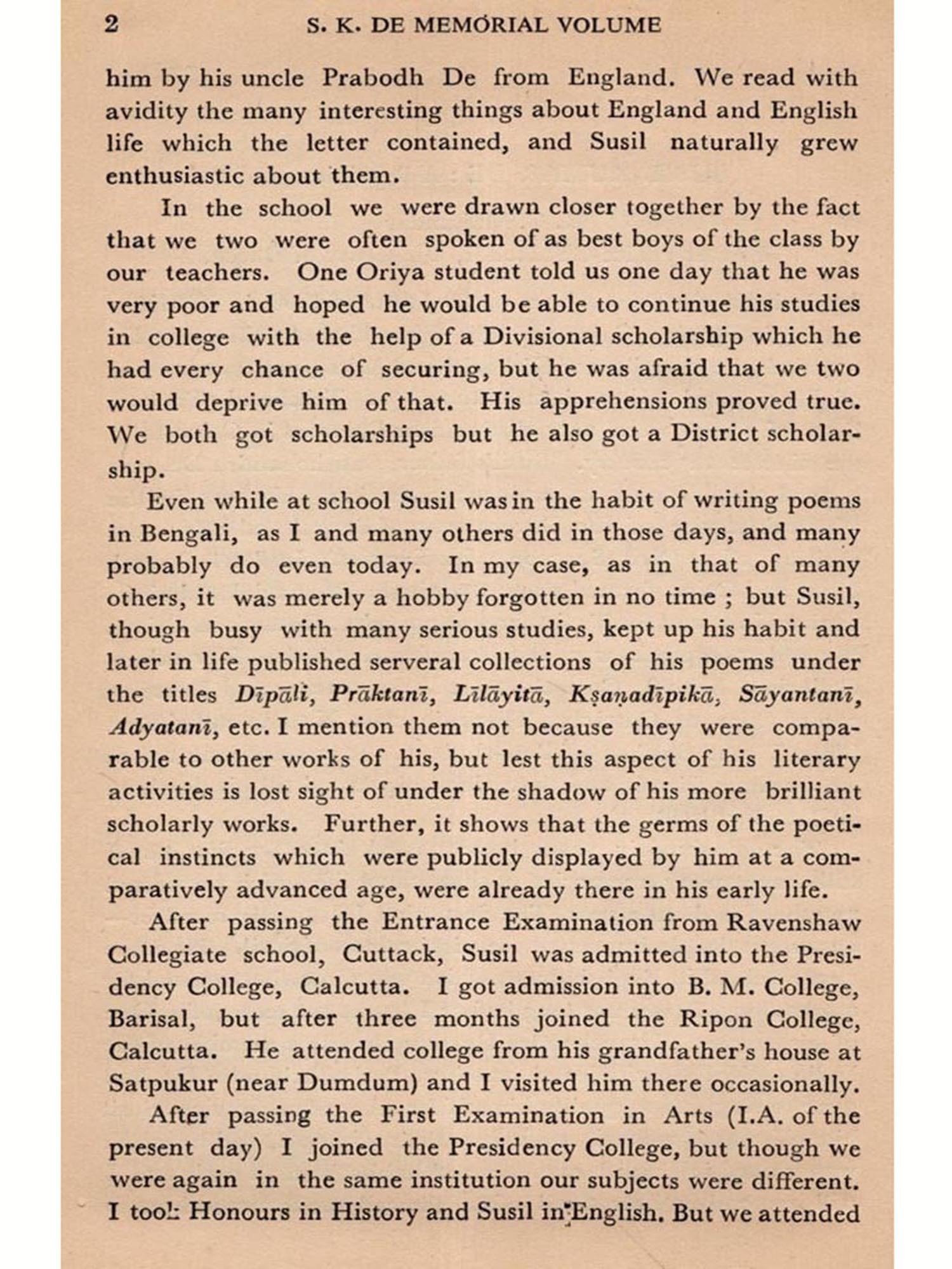Immediately after the demise of Prof. S. K. De, a committee, called S. K. De Memorial Committee, was constituted with Dr. R. C. Majumdar as the President. The Committee got a ready and generous response from the scholarly world, both Indian and foreign, to its appeal for contribution for the projected S. K. De Memorial Volume. We are grateful to the scholars who have enriched this Memorial Volume by their valuable papers. We take this opportunity to thank them all most heartily.