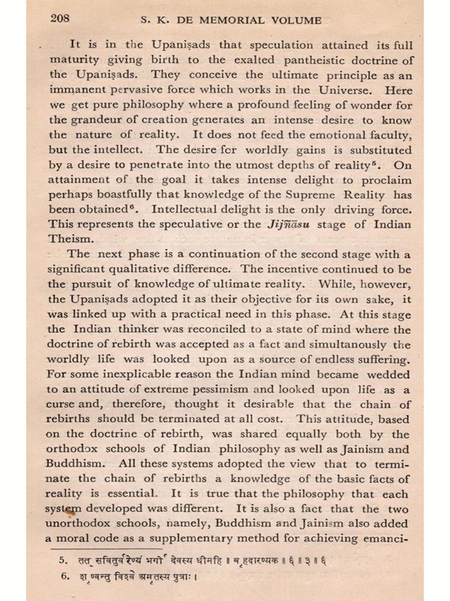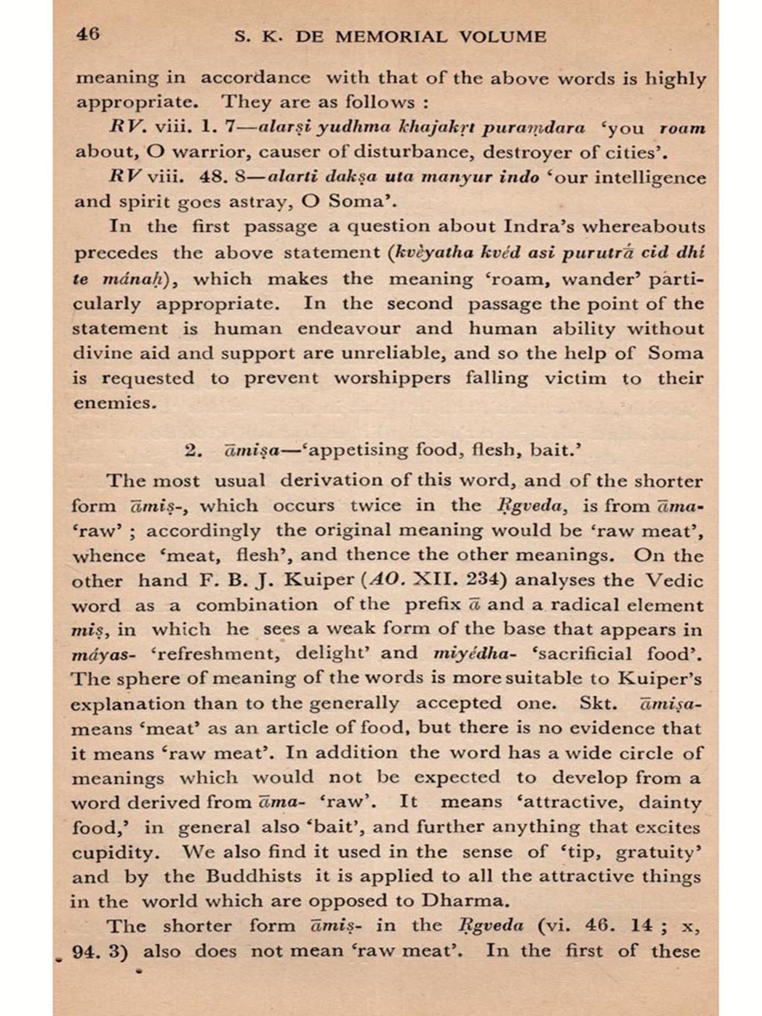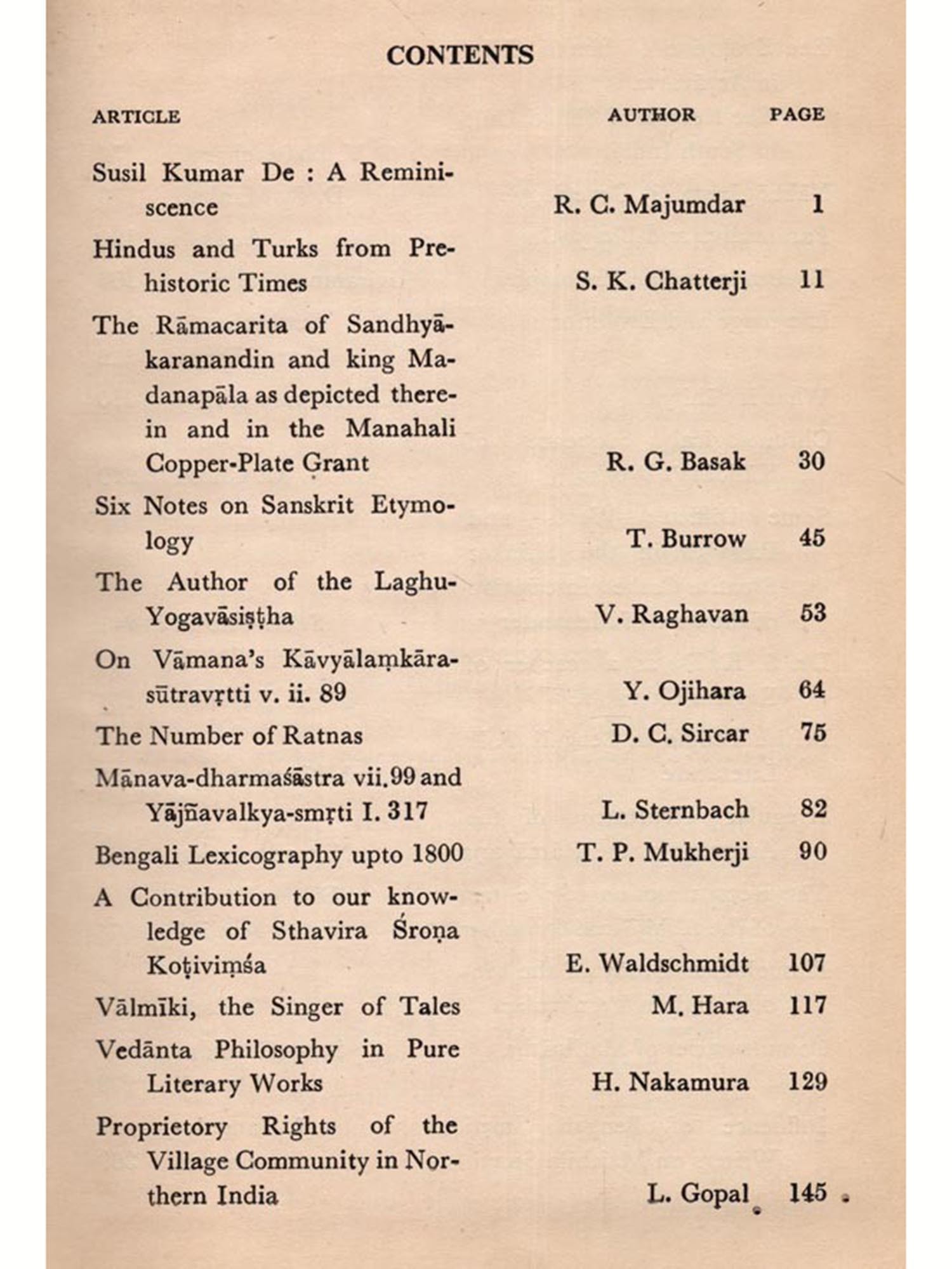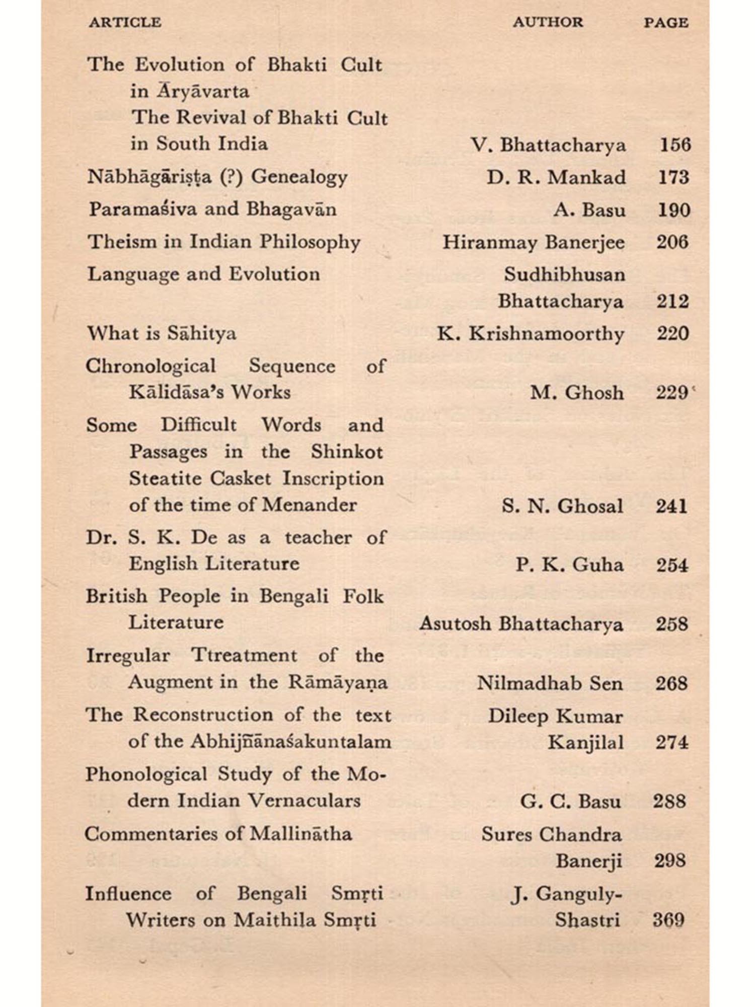 It is our melancholy satisfaction that we have been able, in the face of heavy odds, to present our humble offering to the hallowed memory of Prof. S. K. De who added lustre to Indo-logical studies by his scintillating achievements, and earned the unstinted regard of his pupils by his readiness to help them in advanced studies.
