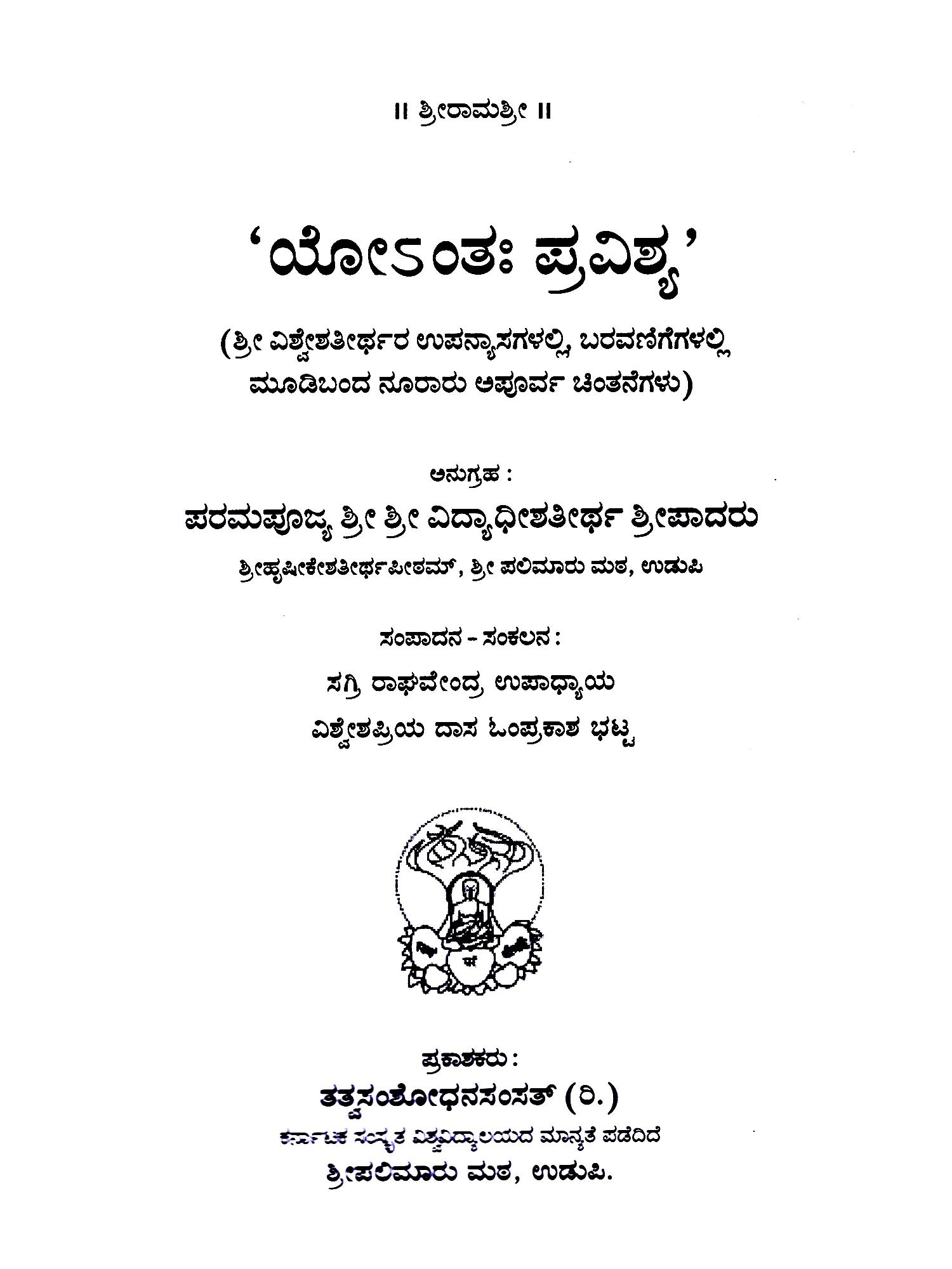 ಅಣುನಾರಾಯಣೋಪನಿಷತ್ (ಶ್ರೀ ಬನ್ನಂಜೆಯವರ ಉಪನಿಷಚ್ಚಂದನೆಗಳೊಂದಿಗೆ): Panditacharya' Shree Bannanje's Discourse Hombelakalli Anukanarayanopanishat (with Upanishads of Sri Bannanje)- Kannada