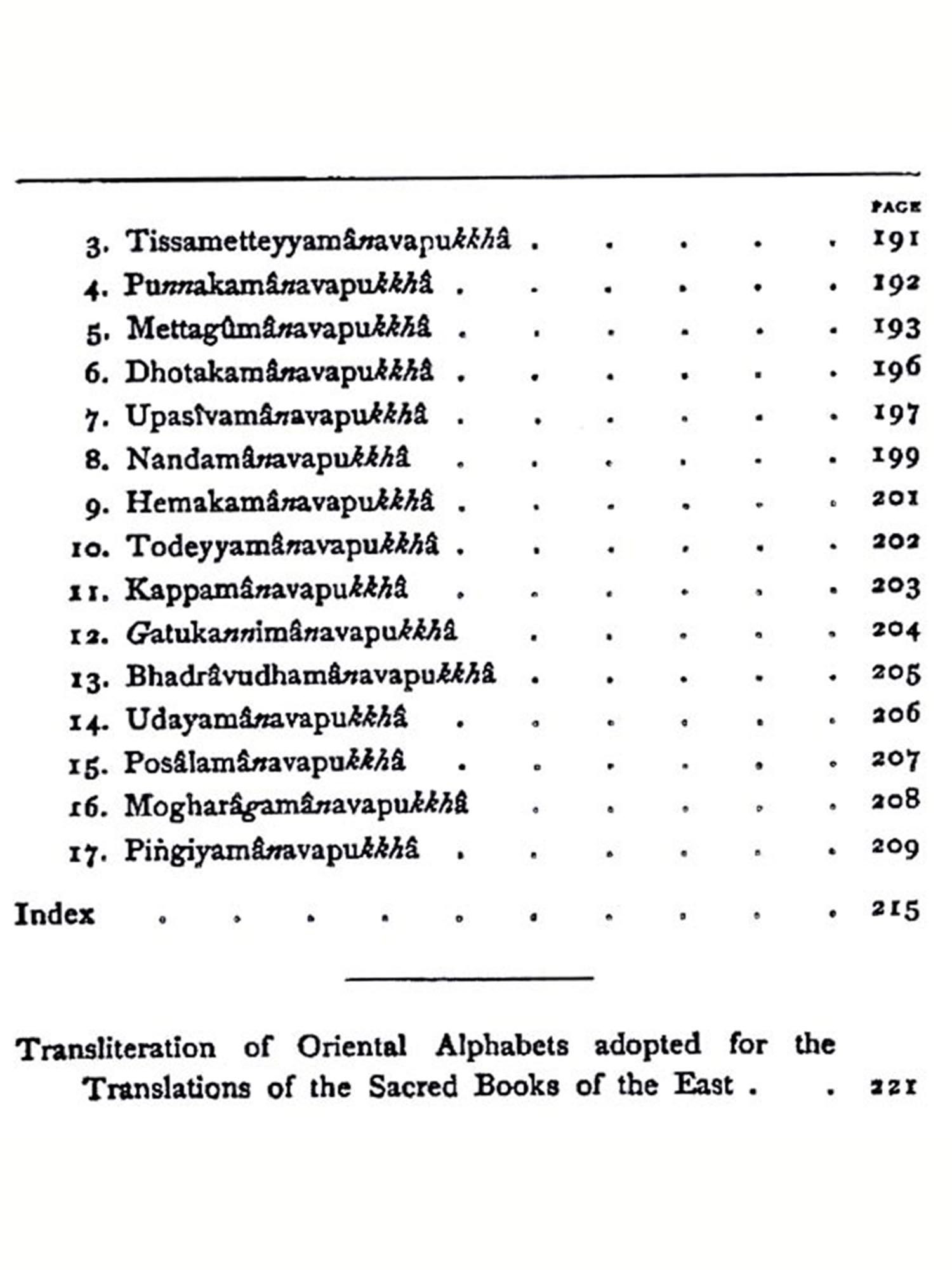 The order of these fifteen books varies, and even, as it would seem, their number. The Dighabhanaka school admits twelve books only, and assigns them all to the Abhidhamma, while the Magghimabhawakas admit fifteen books, and assign them to the Sutta-pitaka. The order of the fifteen books is: 1. Gataka [10]; 2. Mahaniddesa [11]; 3. Kullaniddesa [11]; 4. Patisambhidamagga [12]; 5. Sutta-nipata [5]; 6. DHAMMAPADA [2]; 7. Udana [3]; 8. Iti-vuttaka [4]; 9. Vimanavatthu [6]; 10. Petavatthu [7]; 11. Theragatha [8]; 12. Therigatha [9]; 13. Kariya-pitaka [15]; 14. Apadana [13]; 15. Buddhavamsa [14] 1.