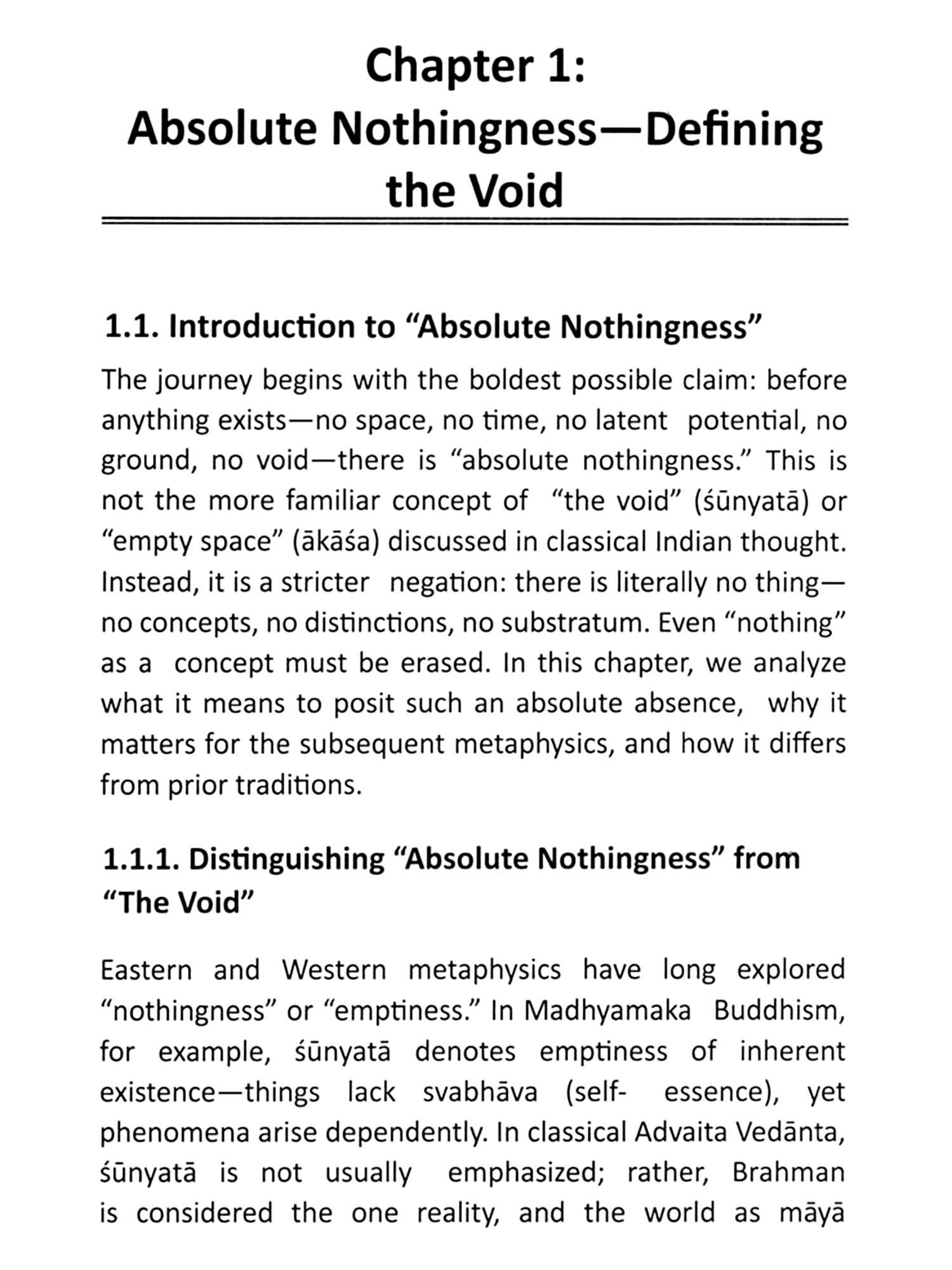 NISHANT GAUTAM, based in Delhi, has devoted his life to exploring the most fundamental questions of existence. Drawing on years of study in Vedānta, Sanskrit, and contemplative traditions, he has developed a distinctive framework that begins with absolute nothingness and unfolds into a paradox-free vision of reality. Nishant leads informal gatherings where he guides seekers through practices of unknowing and mindful witnessing. Passionate about clear and direct expression, he strives to make profound spiritual insights accessible to readers from all backgrounds.