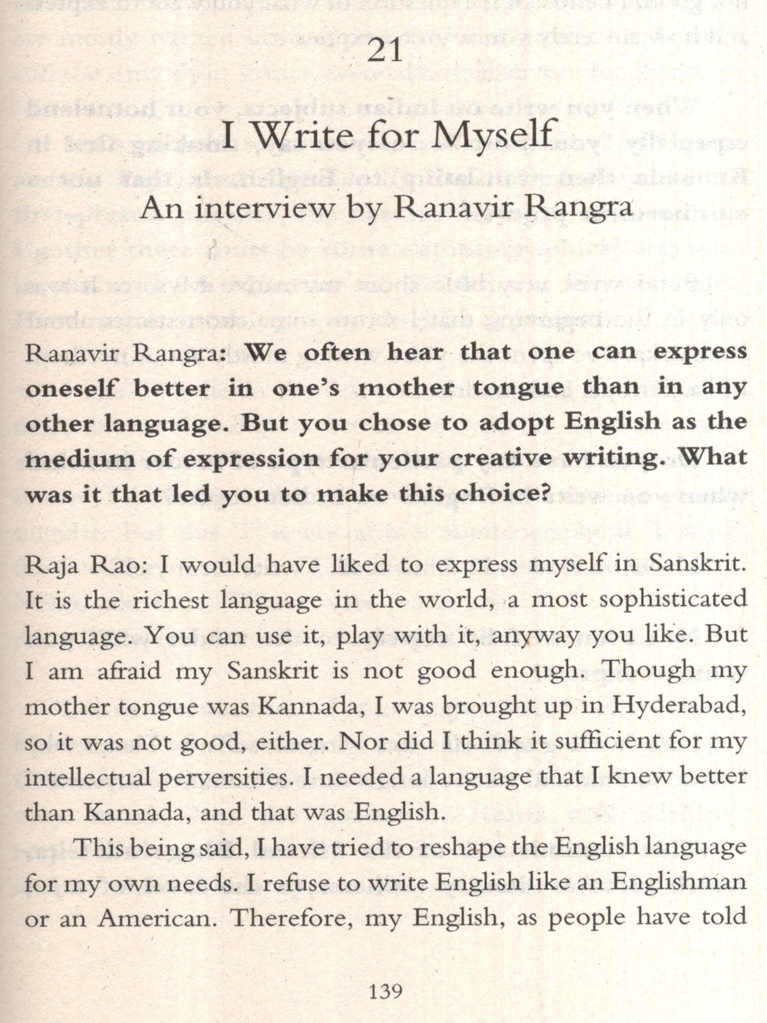 From a young age, Raja knew he would be a writer. Born to a Brahmin family-Vedantin priests and advisors to kings since the thirteenth century-he grew up with a profound knowledge of classical Indian philosophy and culture. Even as a boy, he was convinced writing was his dharma, what one is born to do. The act of writing was his sadhana, the practice taken up to reach one's spiritual goal. His metaphysical and literary quests were interwoven. He was committed to fulfilling his dharma no matter what the consequences-be they poverty, starvation, even death.