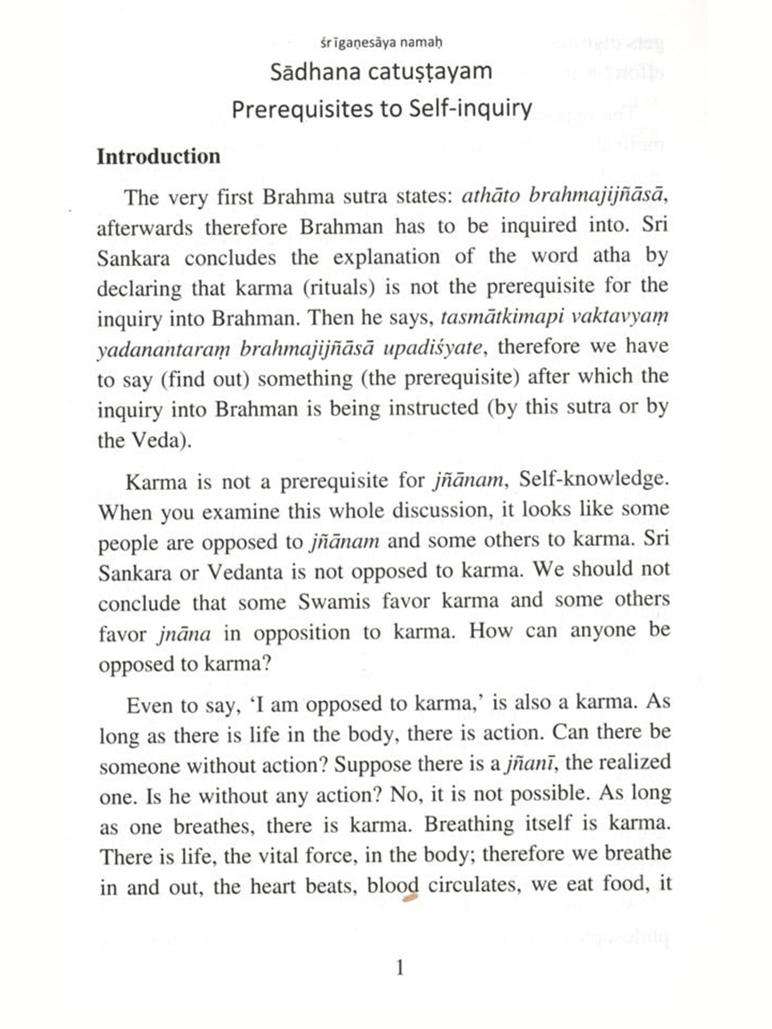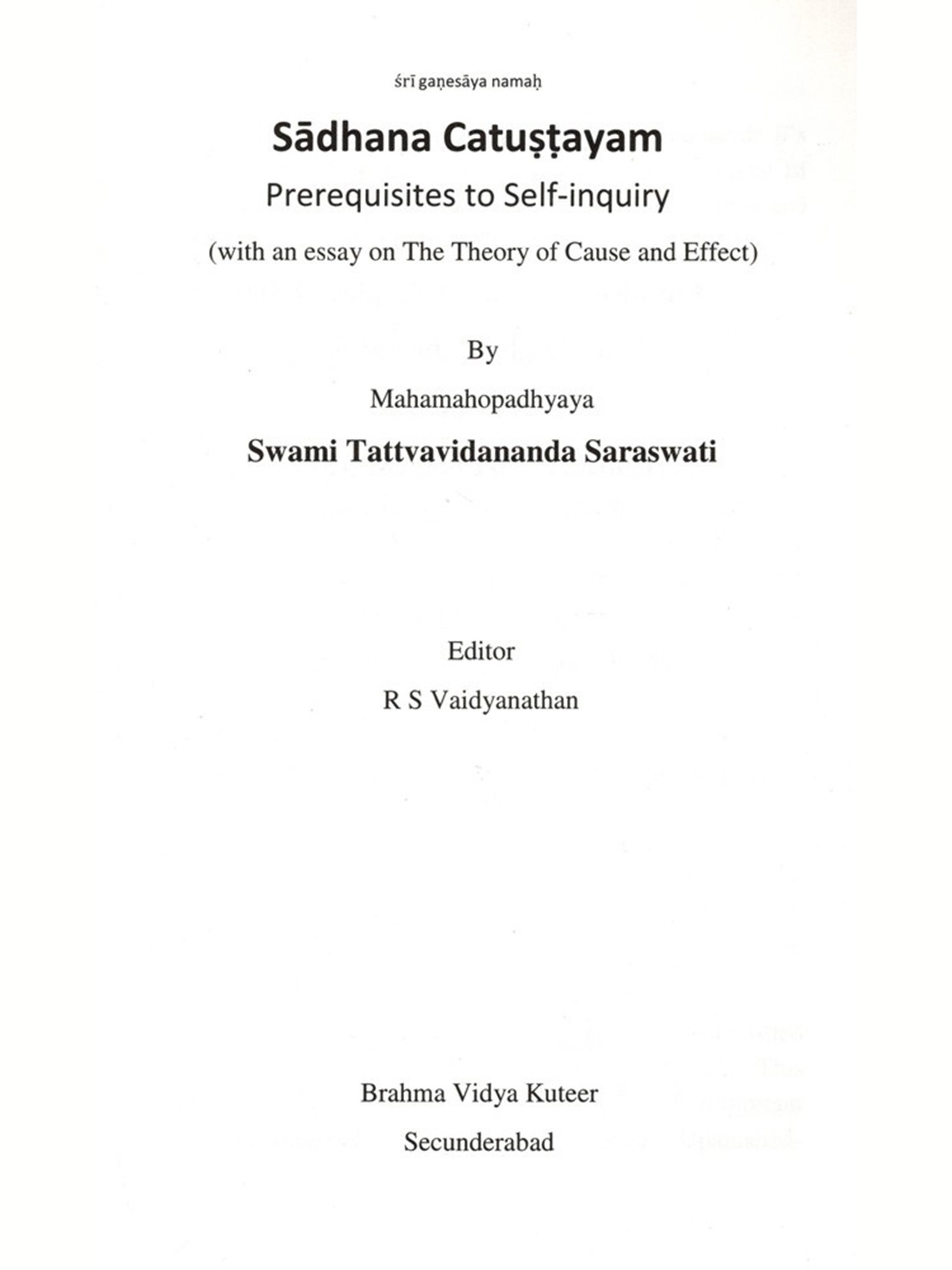 Sadhana Catustayam- Prerequisites to Self-inquiry (with an Essay on the Theory of Cause and Effect)