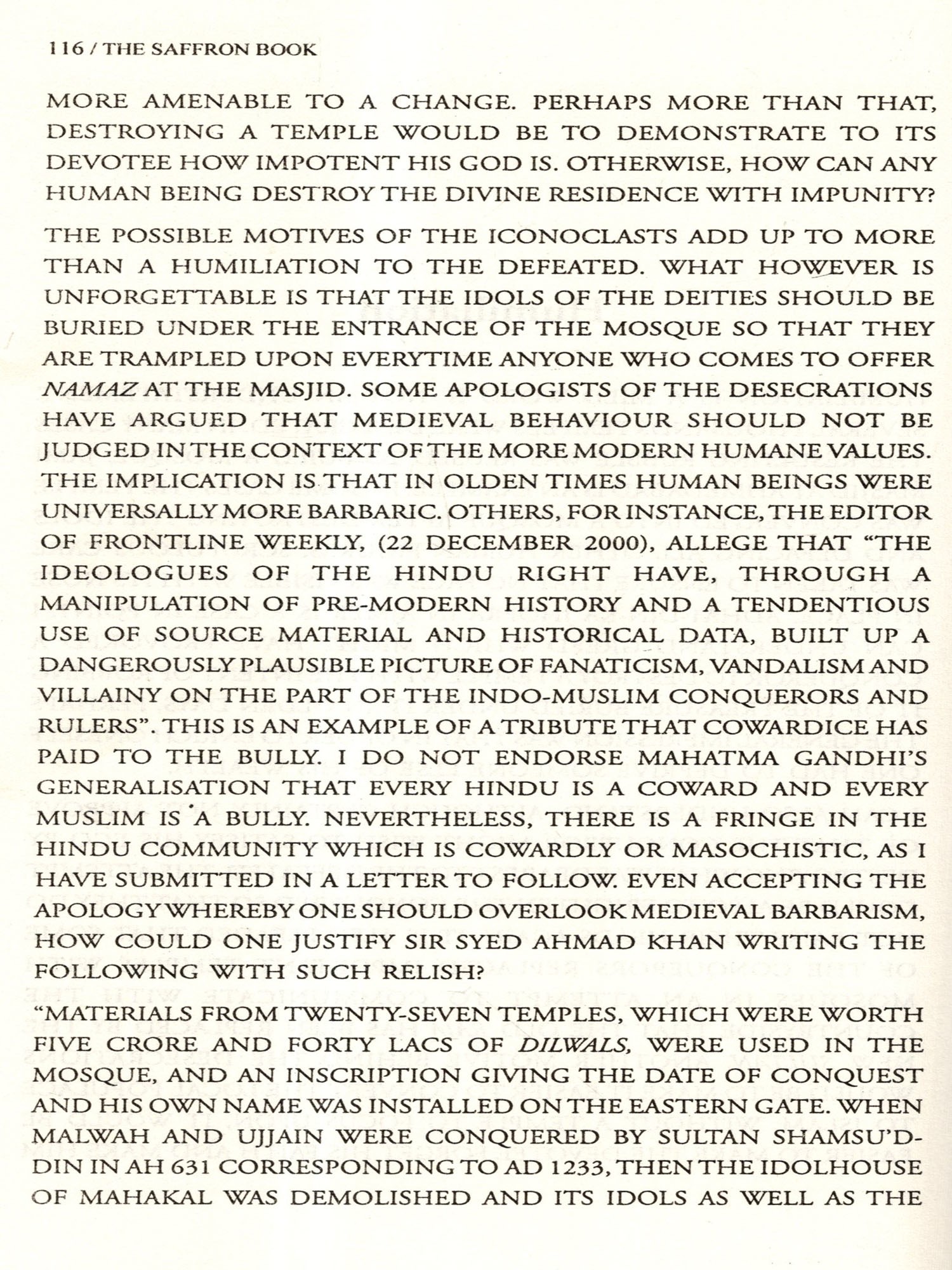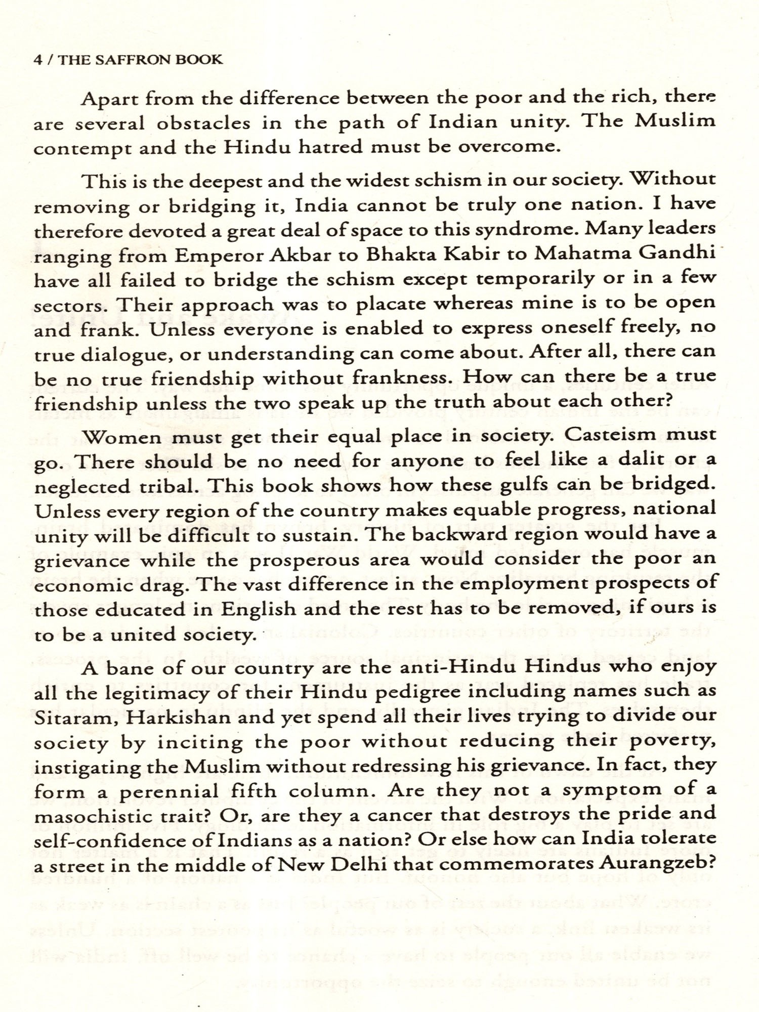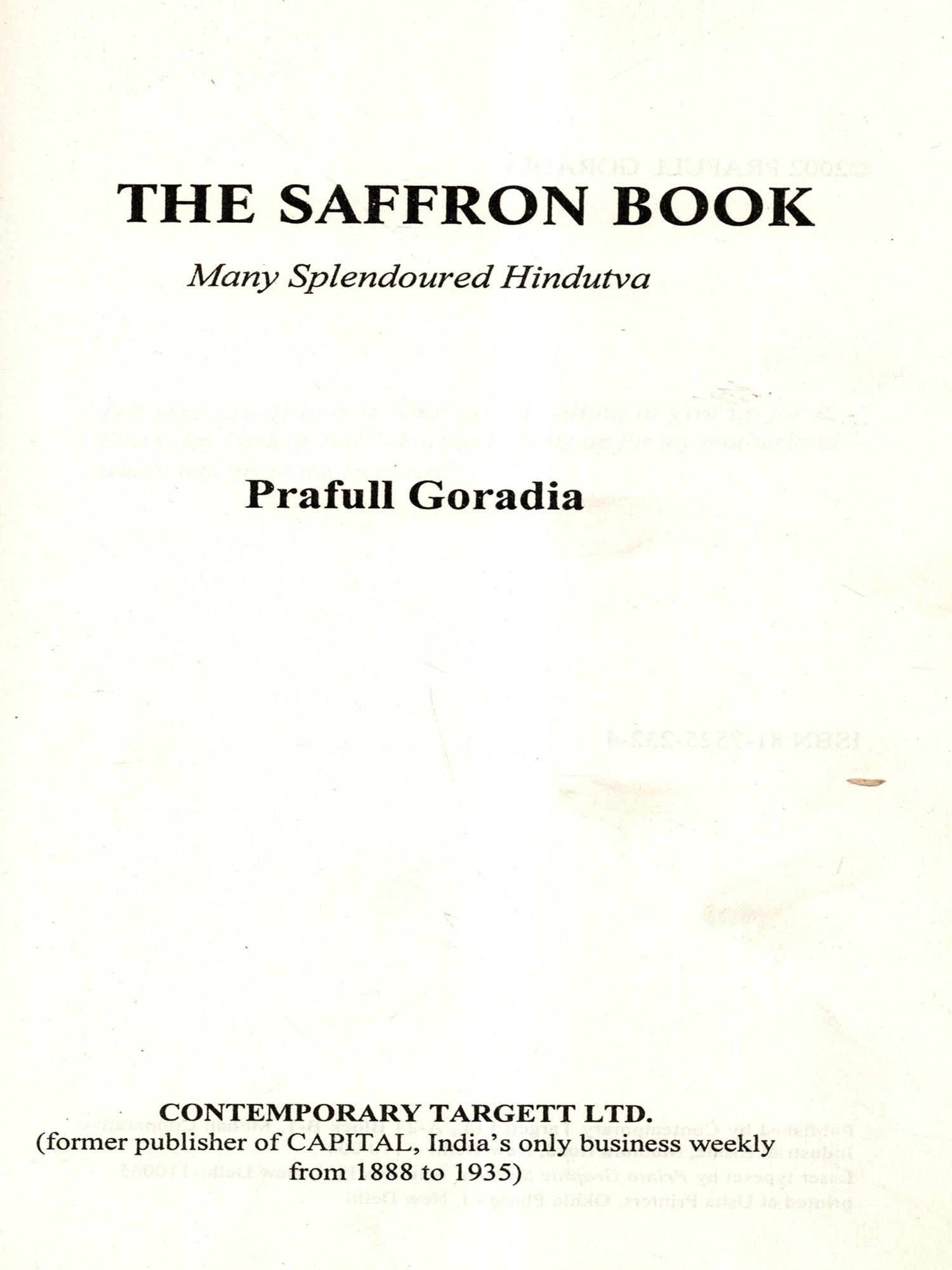 Hindutva, an important but much misunderstood idea, has been written and spoken about often in bits and pieces. At least since Veer Savarkar attempted its integral treatment way back in 1923. While The Saffron Book cannot claim to be a comprehensive thesis, it certainly is an attempt to think through Hindutva, a concept which has not only a past and a present but also a future. With the demise of communism, the decline of socialism and the disappearance of Nehruvian secularism very much in sight, an ideo-logical vacuum has emerged in India. The author believes that now on Hindutva will hold the ideo-logical centre stage in Indian politics.