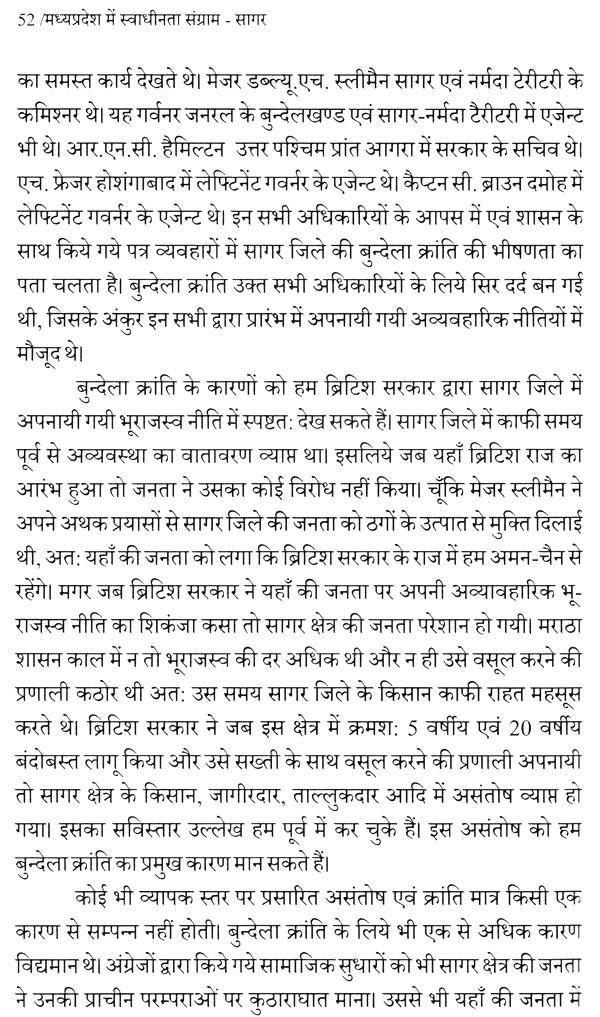 सागर जिले में 1857 ई. का स्वातंत्र्य समर भारतीय इतिहास में अपना एक विशिष्ट स्वरूप उजागर करता है। जहां अखिल भारतीय स्तर पर ब्रिटिश हुकूमत के विरूद्ध प्रथम स्वातंत्र्य समर 1857 ई. में आरंभ हुआ, वहीं यह सागर जिले में तो 15 वर्ष पूर्व 1842 ई. में बुन्देला क्रांति के रूप में आरंभ हो चुका था। बुन्देला सेनानियों ने 1842 की क्रांति के समय का चयन बहुत ही अच्छा किया था। ऑकलैंड (1836-42 ई.) की अव्यावहारिक नीति के कारण इस समय अधिकांश ब्रिटिश फौज अफगानिस्तान युद्ध (1839-42) में व्यस्त थी। एक ओर अफगानिस्तान में अंग्रेजों को पराजय झेलना पड़ी तो दूसरी ओर सागर स्थित बुन्देला सेनानियों ने सागर स्थित अंग्रेजों की नाक में दम कर दिया। बुन्देला क्रांति की तीव्रता से ब्रिटिश अधिकारी थर्रा उठे। चार्ल्स फ्रेजर एवं हैमिल्टन ने बुन्देला क्रांति के दमन के लिए शाहगढ़ राजा बखतवली एवं बानपुर राजा मर्दनसिंह से सहायता की याचना की। फलतः इन दोनों राजाओं की मदद से ही ब्रिटिश सरकार बुन्देला क्रांति का दमन करने में सफल हो सकी।