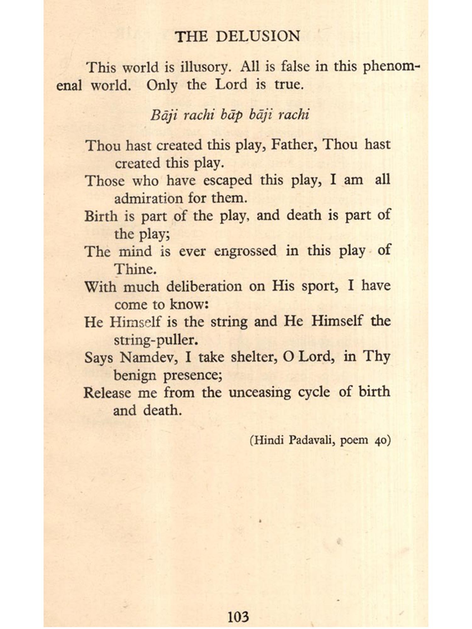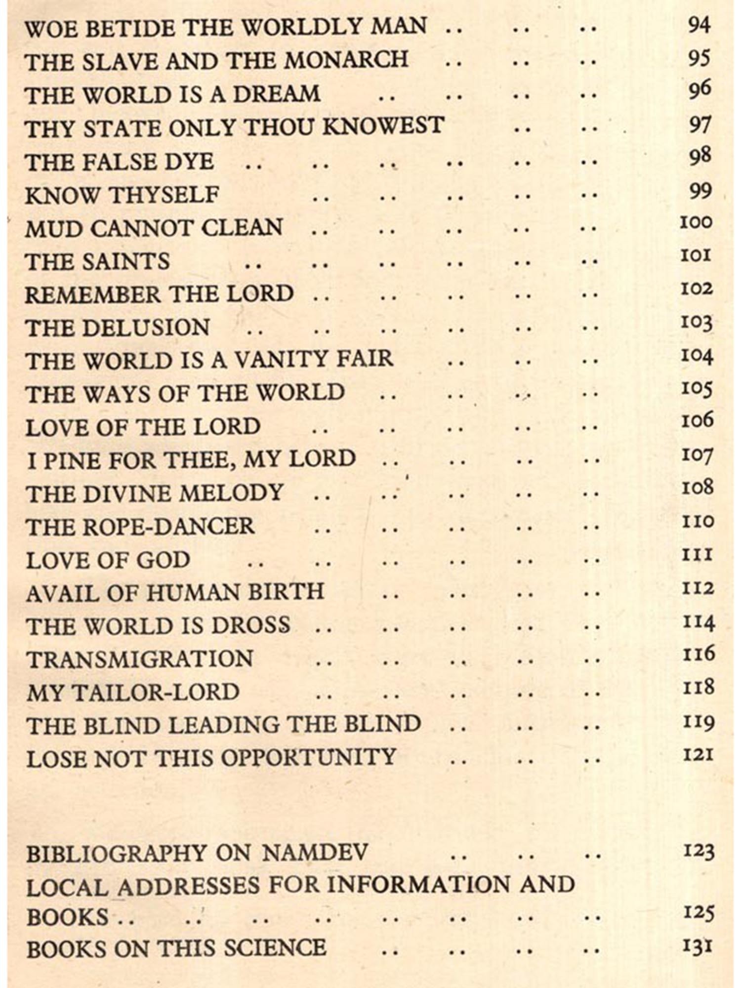 We deeply appreciate the laborious task undertaken by Professor Janak Puri and Mr. Virendra Kumar Sethi in collecting, translating and writing this book. We are grateful to Mr. L. G. Rajwade and his wife, Mrs. Chandravati Rajwade for selecting and translating the Marathi poems. Our thanks also go to Mrs. Indumati Rajwade for rendering help in the preparation of this book and to Miss Louise Hilger who took great pains in going through the manuscript, the proofs and seeing the book through the press.