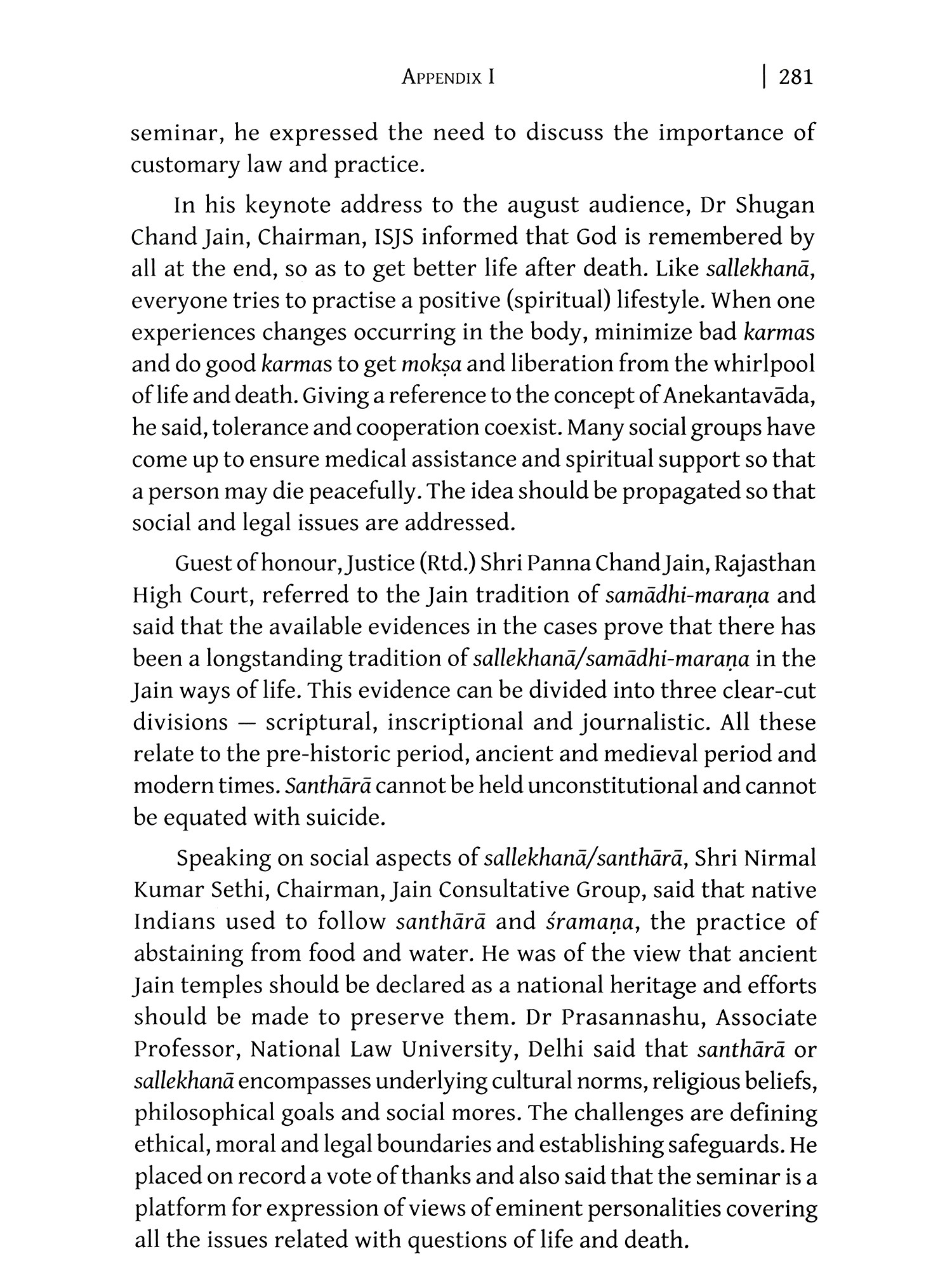 This book arose from contemporary concerns regarding the end of life. Death is an inevitable fact of life. Jain preceptors have offered a system of fasting that makes the time before death an auspicious and pleasant experience, known as sallekhanā, samādhi-marana or santhärä. This practice had been observed ever since Jainism was propagated by the founding tirthamkaras. The eighth Jain canon, the Antakṛtdaśānga-sütra, describes this practice being observed even before Mahāvīra (sixth century BCE). Archaeological evidence at Śravana Belgoļā attests to this practice in the third century BCE as seen in the caves there of Emperor Candragupta Maurya and Śrutakevali Bhadrabähu. In 2006, non-Jain lawyers approached the courts to ban the practice of fasting unto to death by equating it to suicide. In response, the International School for Jain Studies organized three international seminars on this practice, convening philosophers at the University of Madras, lawyers at National Law University, Delhi and medical practitioners at Teerthanker Mahaveer University Medical College at Moradabad to discuss this practice from their respective viewpoints. Modern Western culture has regarded death to be an evil occurrence, and has, through medical technology, managed to prolong lifespan. Recently, there has been an interest in India in embracing the postponement of death. Ironically, the Western world affirms the legal right to suspend nutrition and hydration, and, in some instances, has legalized the hastening of death through medical means.