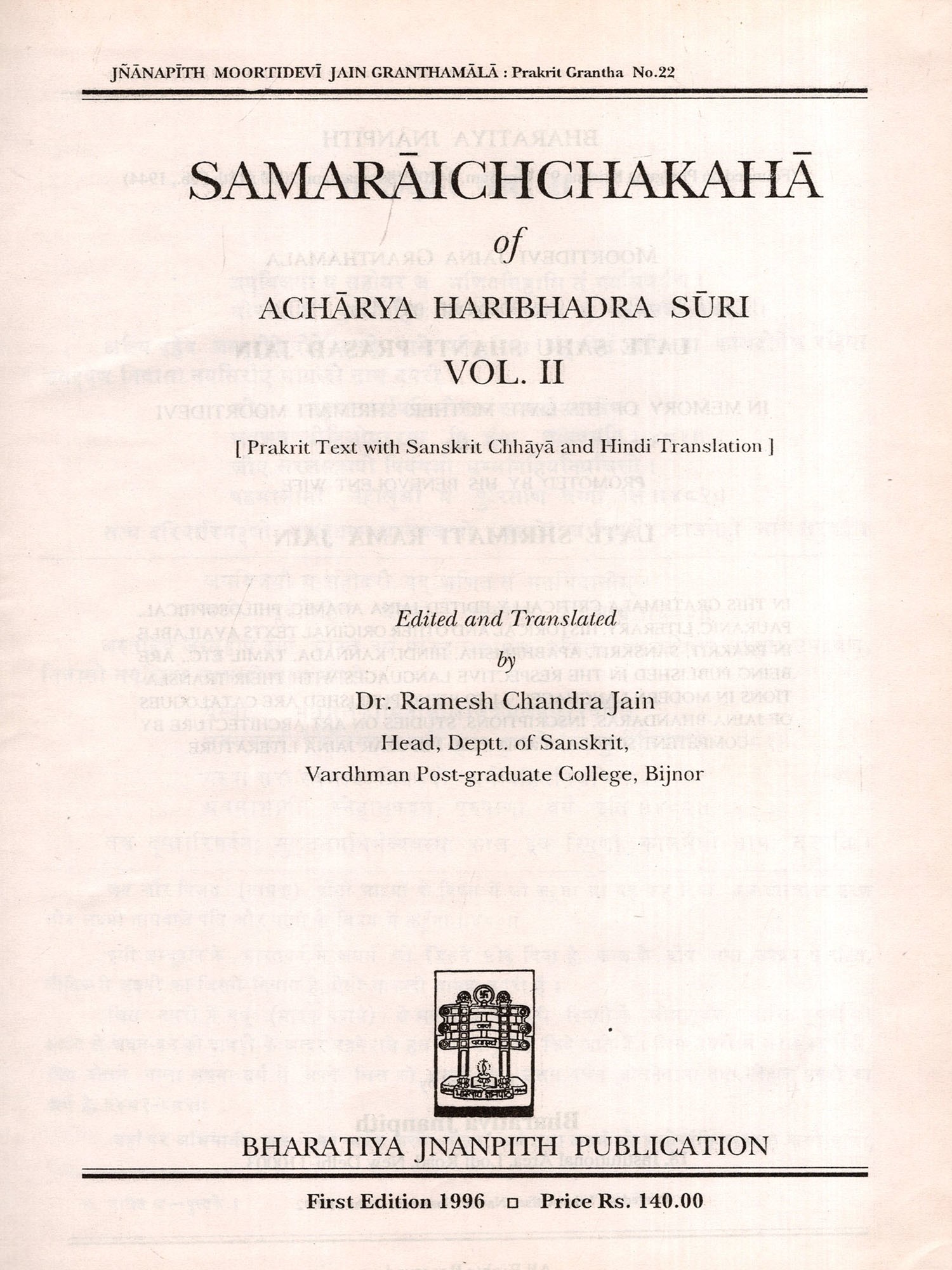हरिभद्र सूरि विरचित समराइच्चकहा: उत्तरार्ध- Samaraichchakaha of Acharya Haribhadra Suri: Uttarardh (An Old and Rare Book)