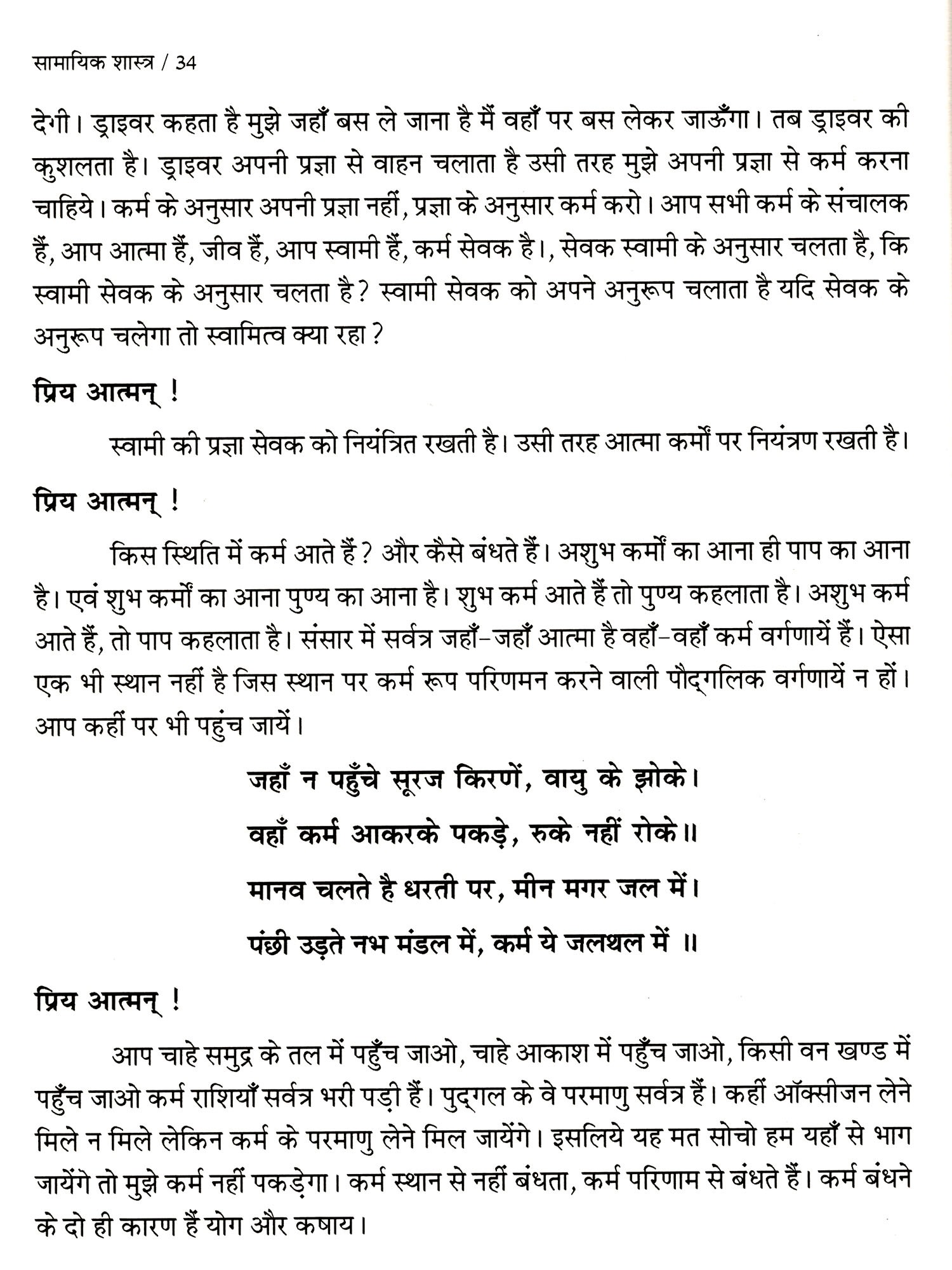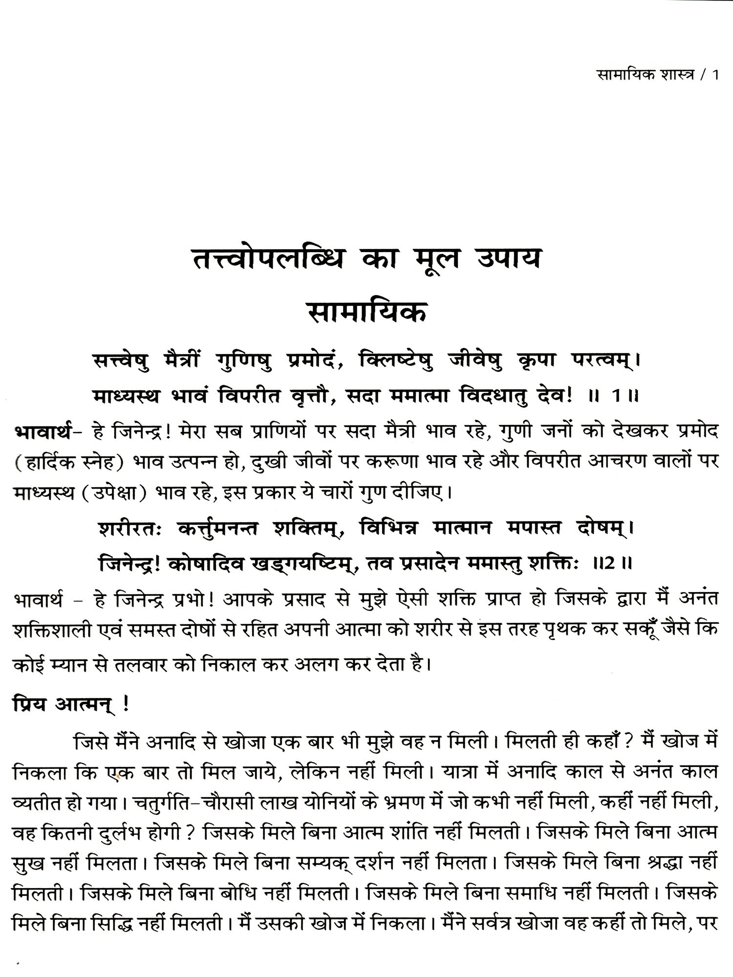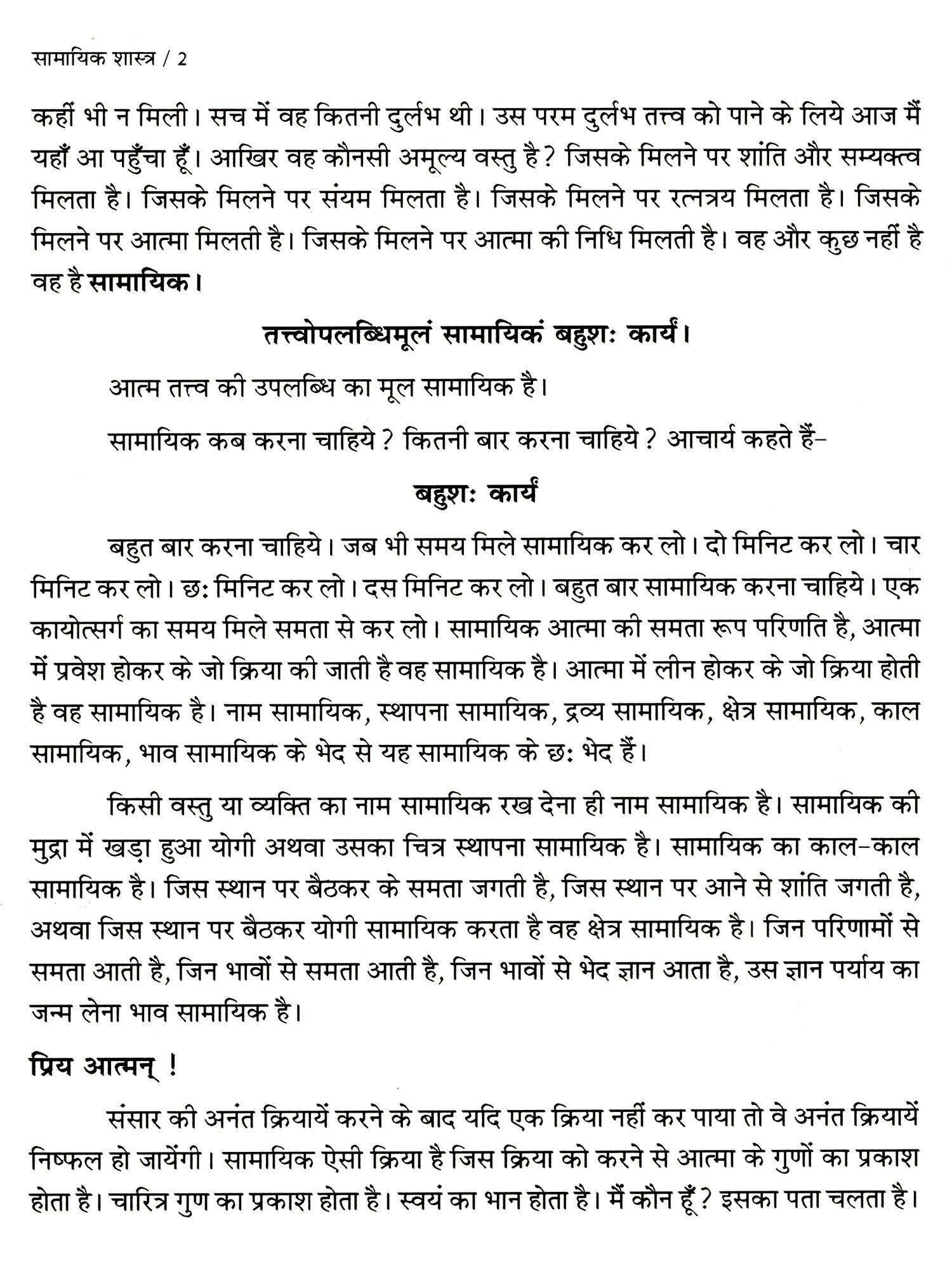 प्रस्तुत कृति" सामायिक शास्त्र" आचार्य अमितगति प्रणीत "सामायिक पाठ" अपरनाम "अमितगति द्वात्रिंशतिका" शास्त्र पर आधारित शास्त्रीय प्रवचनों का महत्वपूर्ण नित्योपयोगी सुखद आलेखन है। जो आध्यात्मिक भाषा शैली में रसापूरित, आत्म चिंतन के निर्मल प्रवाह को लिए हुए जैनागम के तत्वदर्शन को अखिल विश्व के समक्ष प्रस्तुत करने वाली तीर्थंकर महावीर देशना का मंगल मंत्रोच्चारण समाहित किए हुए यह आत्म कल्याण कारक कृति तत्त्व पिपासु, जिज्ञासु पाठकों के लिए अनुपमेय गुरु उपहार है।