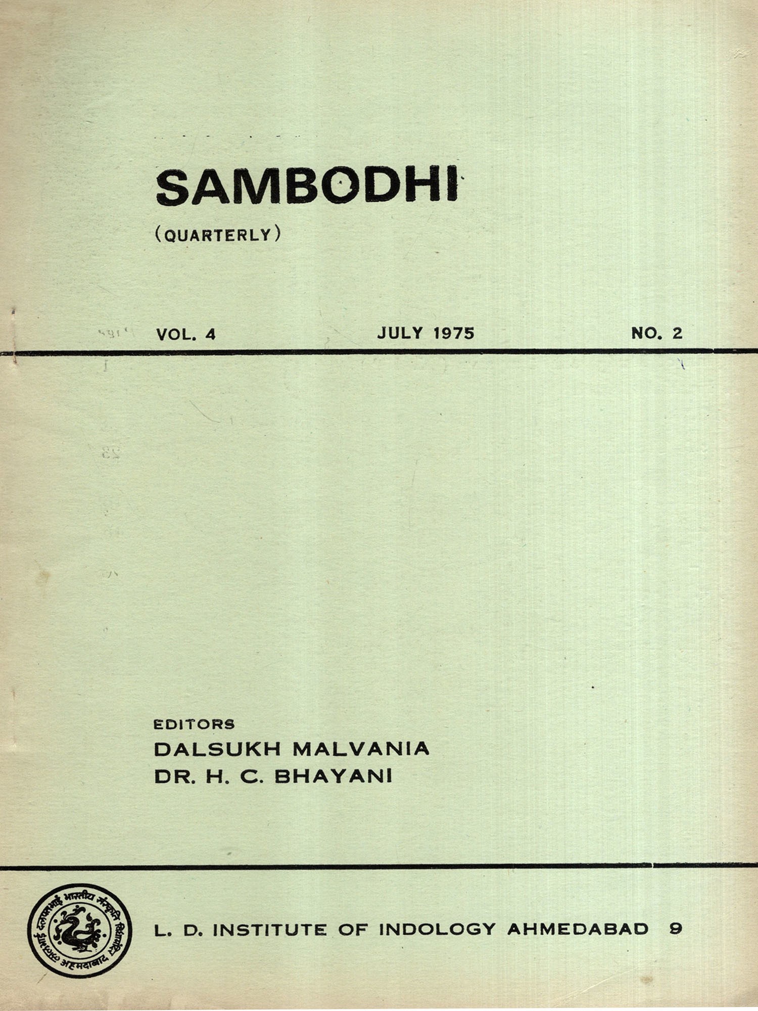 Sambodhi: Quarterly- An Alternative Interpretation of Patanjali's and the World of Life According to the Jaina Literature, Vol-4 April 1975 No.1 (An Old and Rare Book)