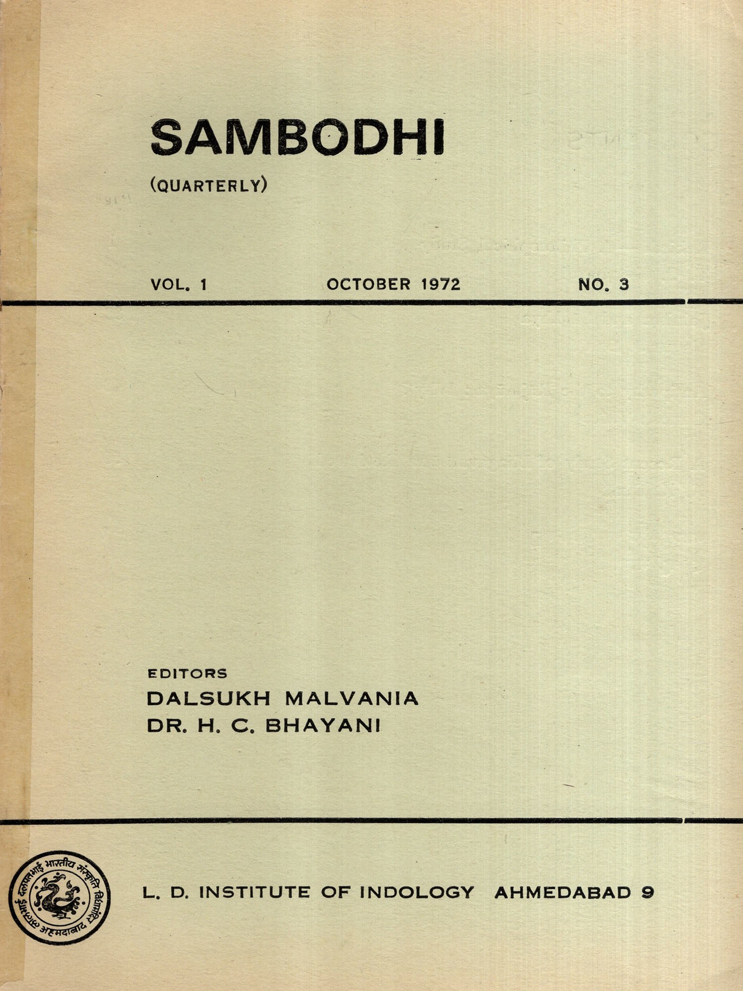 Sambodhi: Quarterly- An Alternative Interpretation of Patanjali's and the World of Life According to the Jaina Literature, Vol-4 April 1975 No.1 (An Old and Rare Book)