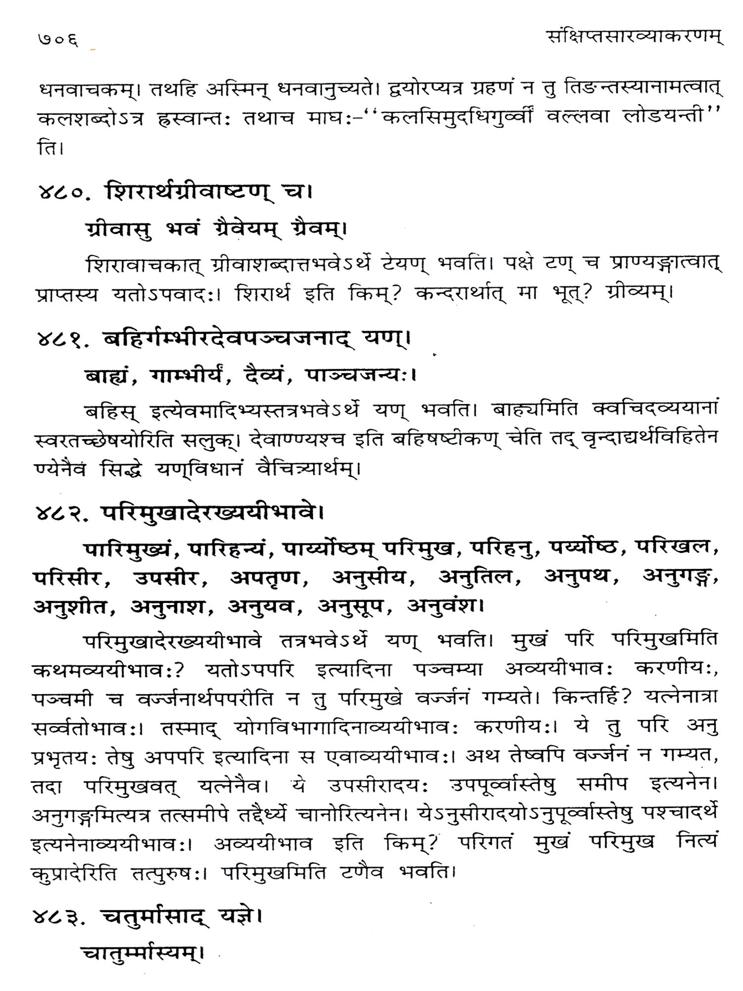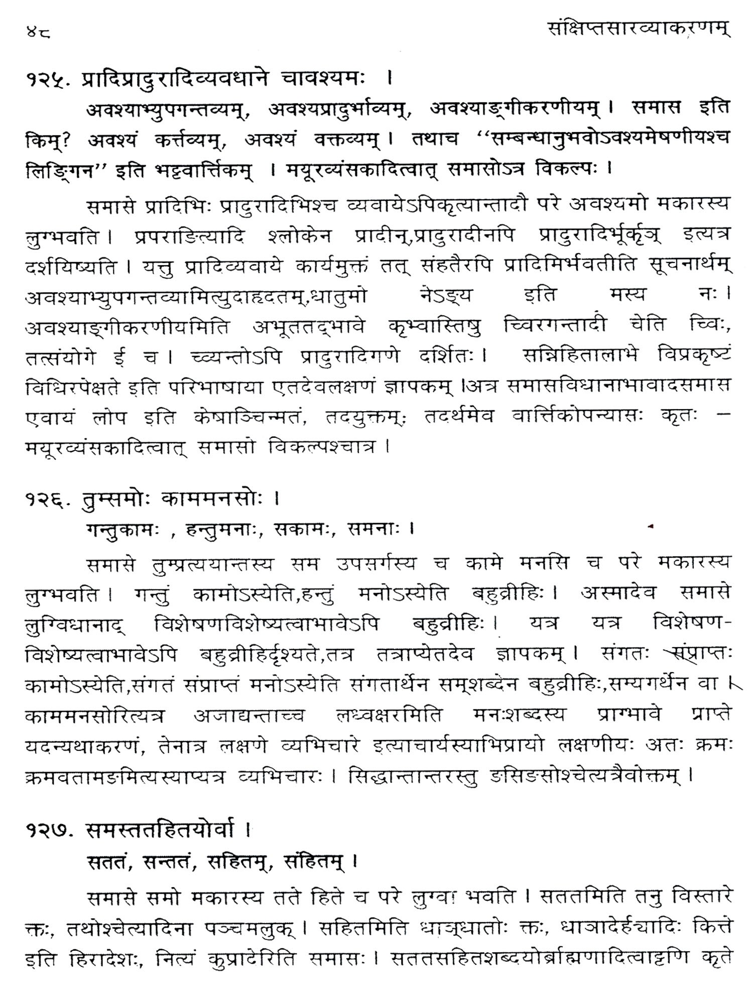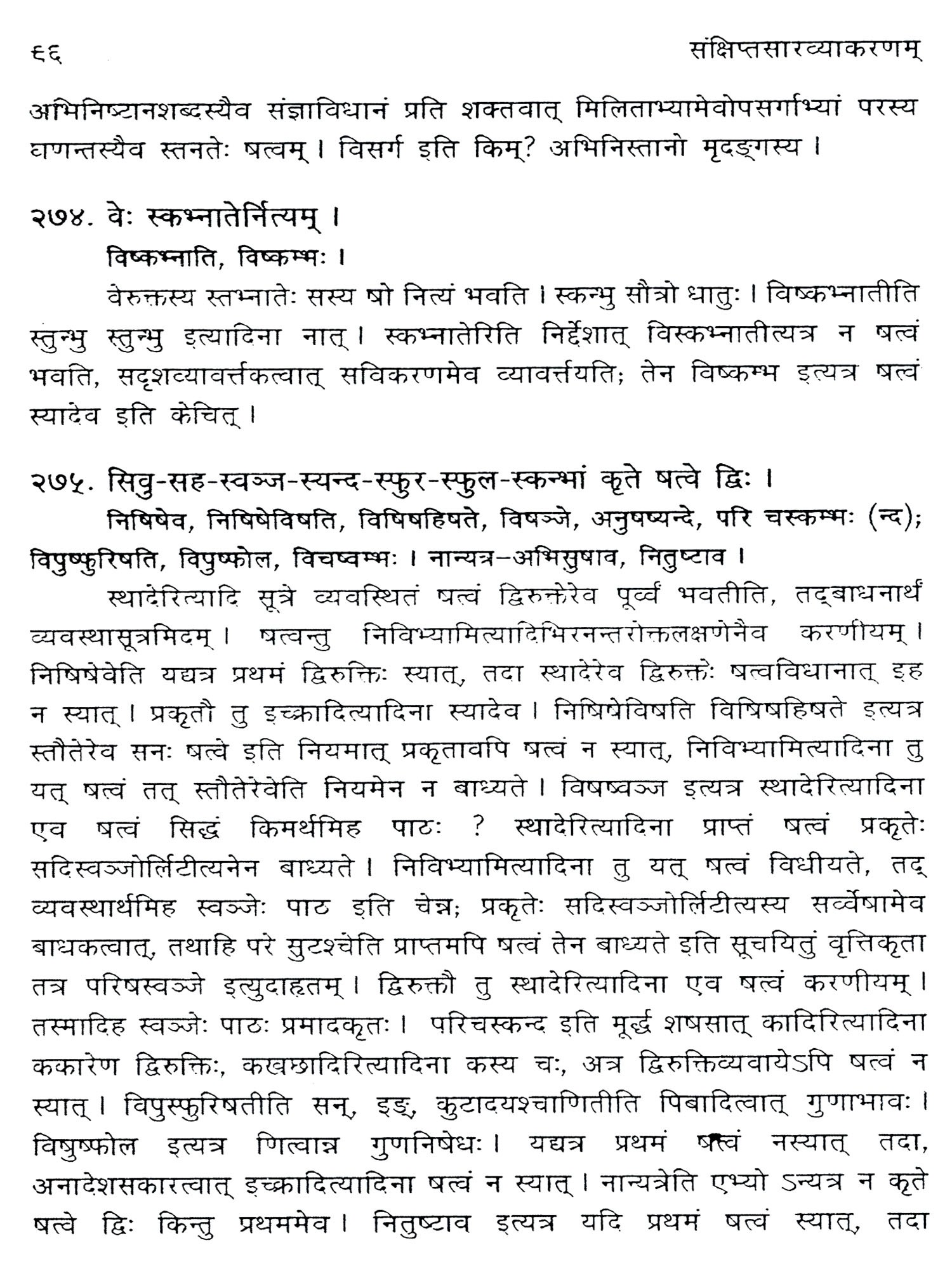 The importance of Vyakarana in Sanskrit is well-known. It is the science which treats the language systematically. especially the Sanskrit language. Right from the Vedic period till modern date, a large number of scholars have written a number of books on Sanskrit grammar. As a general trend prevelant throughout in India and abroad it is only the Paninian System which is propularly studied and taught. About rest of the systems of Sanskrit grammar not much has come to light though at a given time these systems must have attained popularity. The SAMKSIPTASARA Vyakarana by Kramadisvara of 10th century is an important treatise on Sanskrit grammar among non-paninian systems. Each and every grammarian who belonged to these systems has contributed in his own way to simplify the grammatical rules.