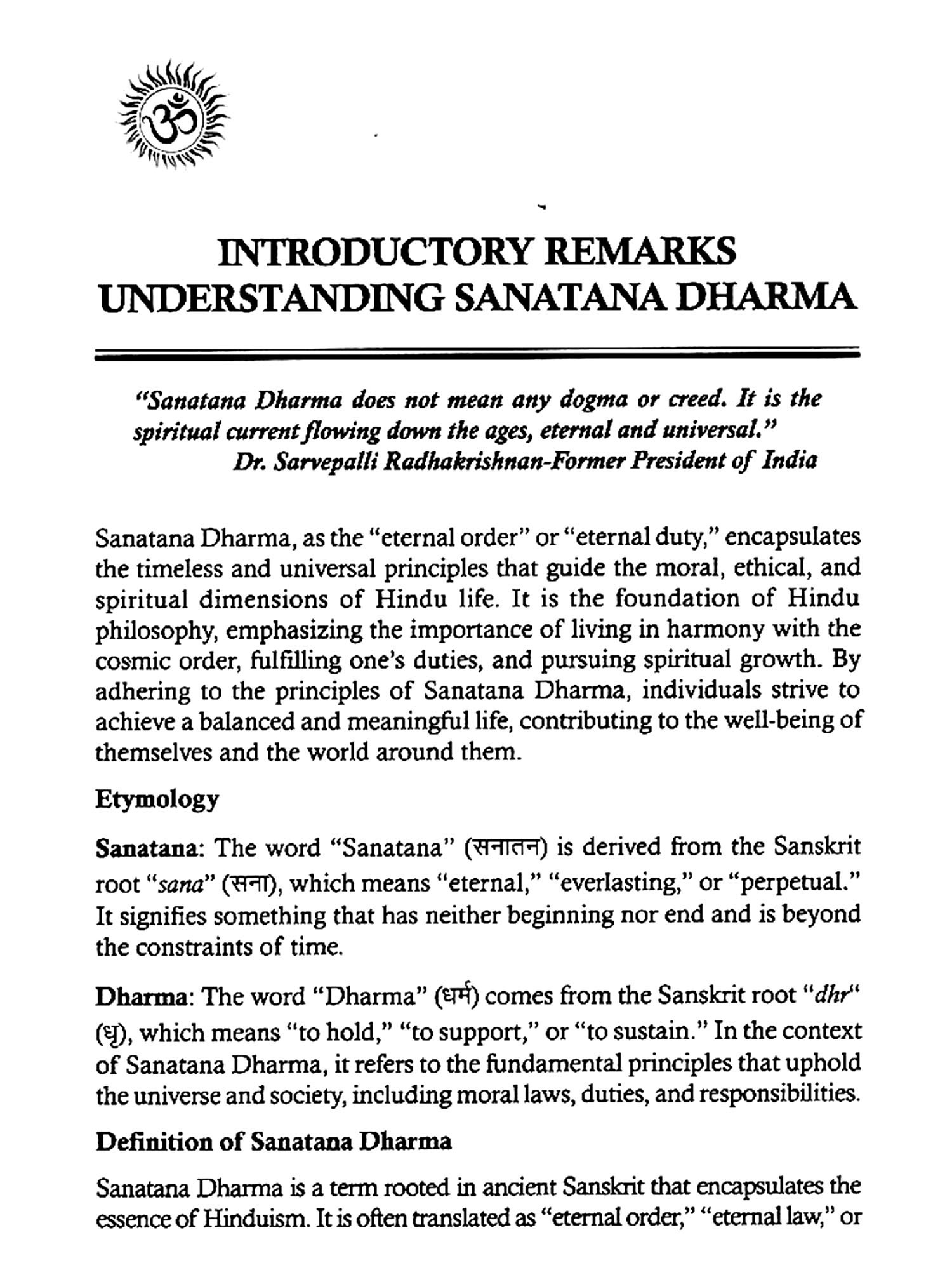 In this Book, I have sought to present an accessible overview of Sanatana Dharma while also addressing some of the criticisms and misconceptions that have emerged over time. These critiques arise from various sources, including historical contexts, misrepresentations, and some inherent biases. By examining these perspectives, my intention is not only to clarify misunderstandings but also to provide a balanced view of Sanatana Dharma's teachings and their relevance in today's world.