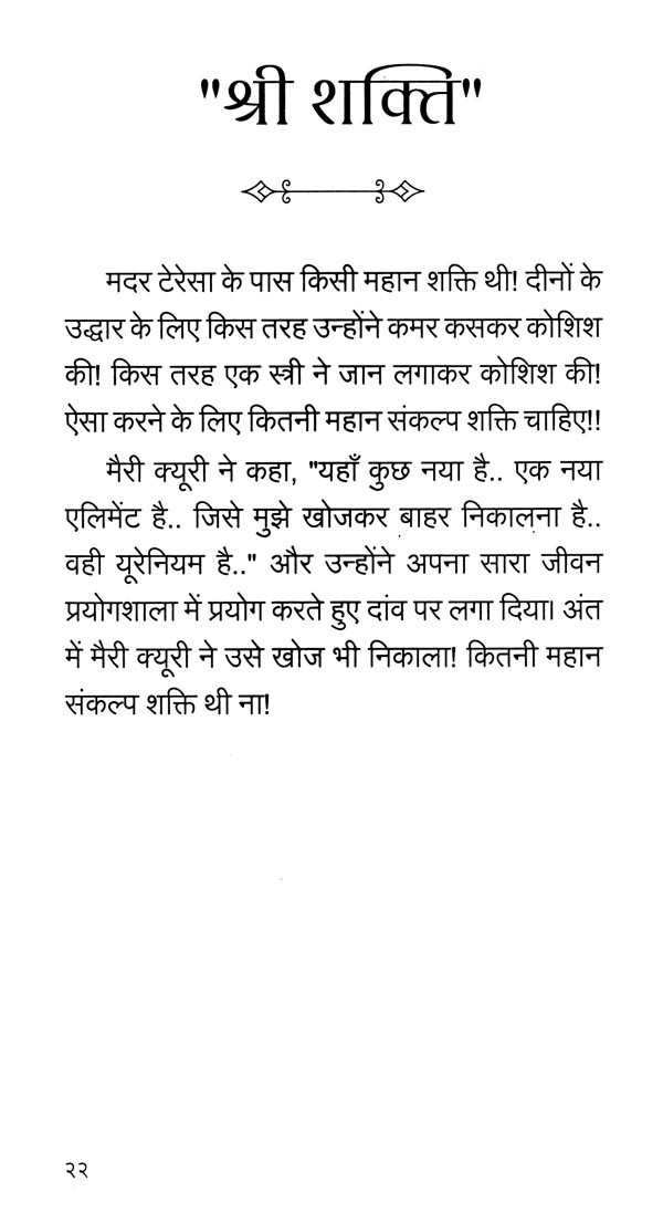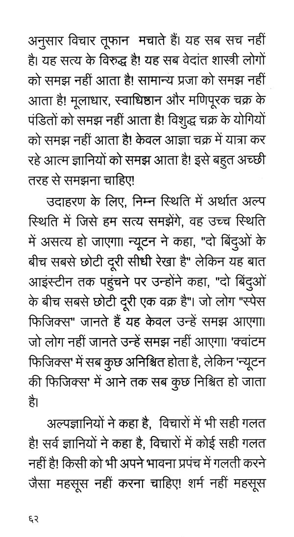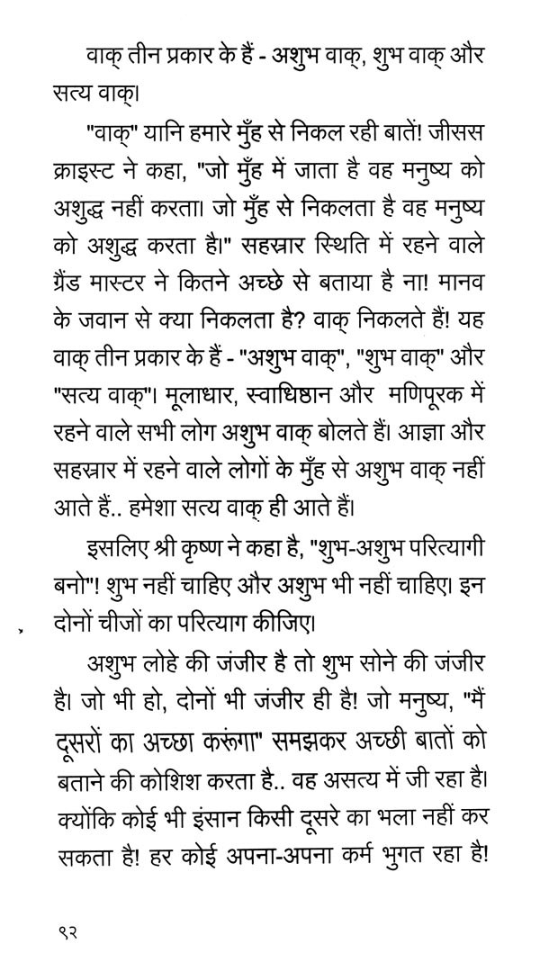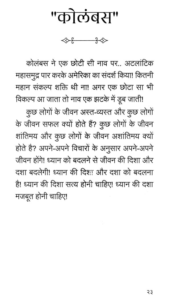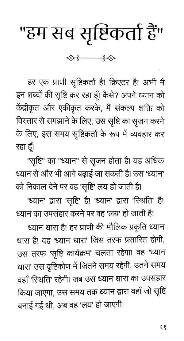 यह किताब आपकी सोच बदल देगी। ब्रह्मर्षि पितामह पत्री जी ने हमारी आंतरिक भूमिकाओं की शक्ति के बारें में हमें गहराई से, वैज्ञानिक दृष्टिकोण से समझाया है। किस प्रकार हम अपनी सोच को शुद्ध करके, जो चाहते हैं उसे प्राप्त कर सकते हैं? यह ज्ञान हमें प्रदान किया है। हमारे जीवन में हमारी वाणी किस प्रकार महत्त्वपूर्ण भूमिका निभाती है और कैसी वाणी होने से हम लोकप्रिय होकर अपनी आत्मा की शुद्धता को बनाये रख सकते हैं, यह भी बताया है। पत्री जी ने हमारी भौतिक तथा आध्यात्मिक जागृति के रहस्यों को इस किताब द्वारा उजागर किया है, जो आपके जीवन को नई दिशा अवश्य देगी।