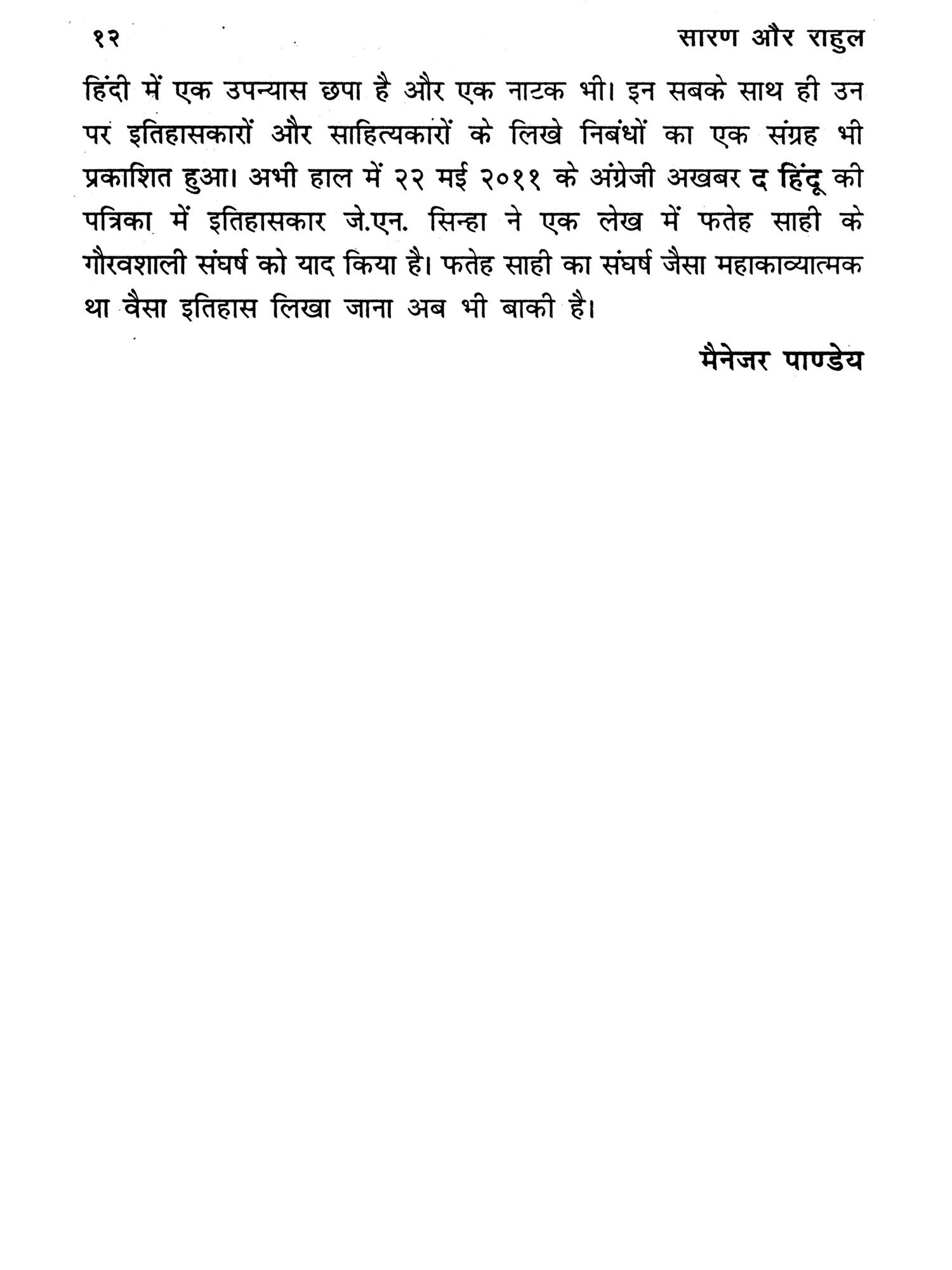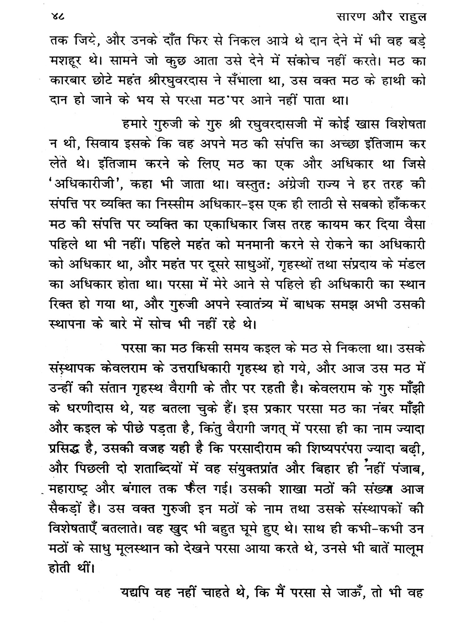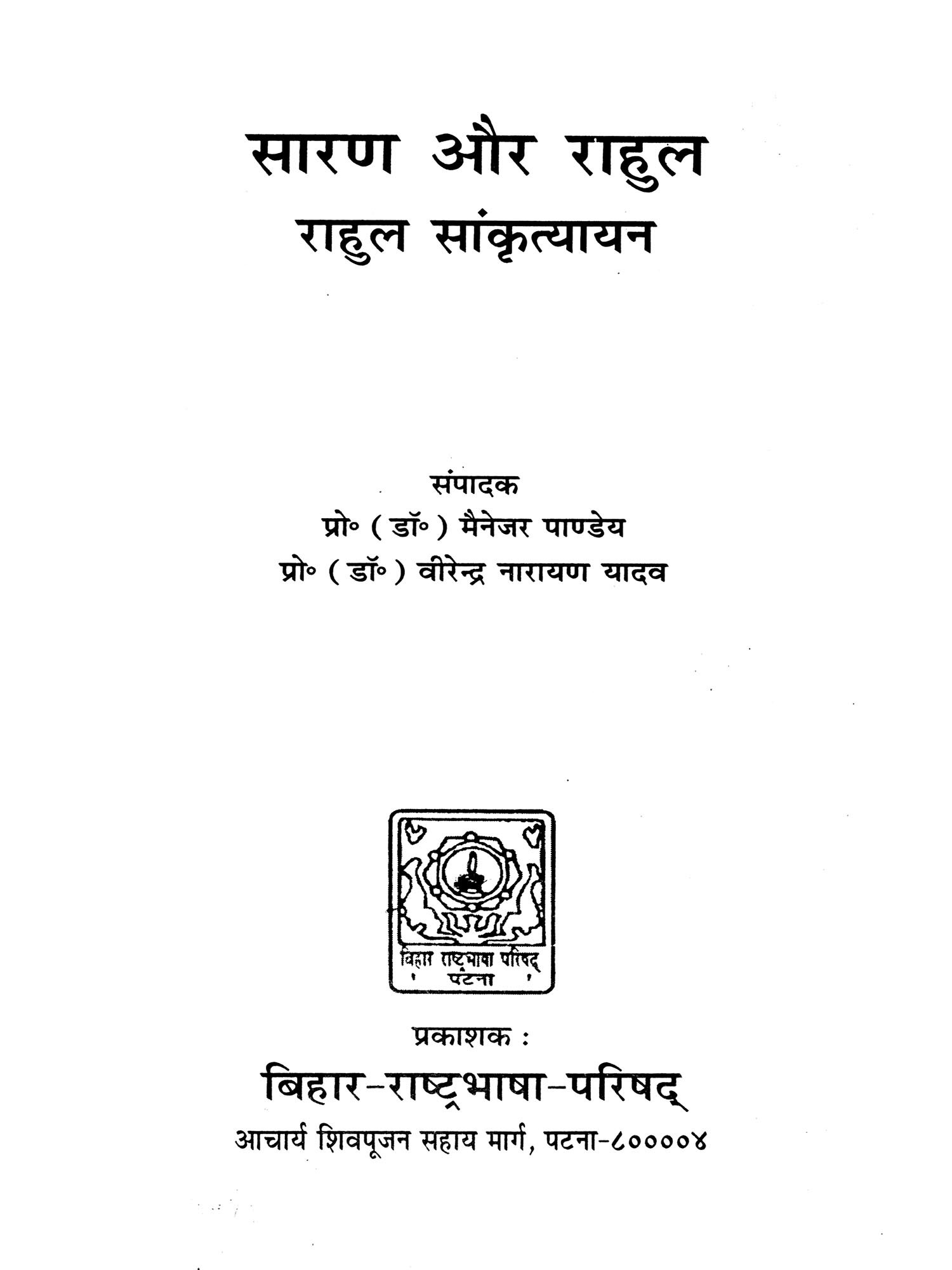 "सारण और राहुल" महापंडित सांकृत्यायन की मेरी जीवन यात्रा (आत्मकथा) के सारण से सम्बद्ध अंशों का संकलन है। सारणवासी अपने सामाजिक, शैक्षणिक, राजनीतिक, सांस्कृतिक जिम्मेवारियों के प्रति सर्वदा प्रयत्नशील रहे हैं। इसी सामूहिक प्रयत्न के परिणामस्वरूप आजादी के पूर्व डॉ० राजेन्द्र प्रसाद के नाम पर उत्तर भारत का एक प्रतिष्ठित शैक्षणिक संस्थान राजेन्द्र कॉलेज खुला । आजादी के बाद विश्वविद्यालय की मांग की जाती रही, जनांदोलन होते रहे । आखिर जयप्रकाश विश्वविद्यालय खुला। राजेन्द्र कॉलेज एवं जयप्रकाश विश्वविद्यालय के विविध पदों एवं जिम्मेवारियों के निर्वाह के ही दरम्यान राष्ट्रीय स्तर के ख्यात् विद्वानों/विशेषज्ञों को हमलोग व्याख्यान् के लिए बुलाते रहे हैं । राहुल एवं जयप्रकाश के जन्मदिन पर विश्वविद्यालय में देश स्तर के विद्वानों का आना-जाना लगा रहा। कवि केदार, समाजशास्त्री आनंद (जे.एन.यू.), इम्तियाज अहमद (जे.एन.यू.), मैनेजर पाण्डेय (जे.एन.यू), हरिवंश (पत्रकार एवं राज्यसभा के माननीय सभापति), सुनील (समाजवादी), योगेन्द्र यादव (पत्रकार), अरूण कमल (कवि) आचार्य राममूर्ति, रामवचन राय आदि ने आकर राहुल एवं भिखारी ठाकुर के महत्त्व एवं वैशिष्टय को केन्द्र मे रखकर सारण के प्रबुद्धजनों से संवाद करते रहे हैं। सारण के वातावरण को बौद्धिक एवं वैचारिक रूप से समृद्ध करने में निश्चित रूप से उपर्युक्त कवि/लेखकों की बड़ी भूमिका रही । राहुल और भिखारी ठाकुर देश के कबियों, लेखकों, नाटककारों को सर्वदा आकर्षित रहे । दोनों सारण के प्रबुद्धजनों को चिंतन मनन के लिए बाध्य करते रहे । इसी के परिणामस्वरूप सारण के प्रशासनिक केन्द्र छपरा के पूर्वी प्रवेश द्वारा पर तत्कालीन मुख्यमंत्री लालू प्रसाद के निर्देश पर भिखारी ठाकुर की नाट्यमंडली सहित मूर्त्ति लगी, जिससे कवि केदार जी बहुत प्रभावित हुए थे। यद्दी नहीं २००३ ई० में बिहार-राष्ट्रभाषा-परिषद् के निदेशक पद पर रहते हुए मैंने "भिखारी ठाकुर रचनावली" के संपादन एवं प्रकाशन का निर्णय लिया । "भिखारी ठाकुर रचनावली" अत्यन्त लोकप्रिय हुयी जिसकी संभावना १९४७ ई० में राहुल जी ने व्यक्त की थी "भिखारी ठाकुर हमनी के एगो अनगढ़ हीरा हवे । उनकर में कुलि गुनबान बा, खाली एने ओने तनी तूनी छटि के काम हवे ।" इतना ही नहीं बल्कि राहुल जी ने अपने इस भाषण में भोजपुरी प्रांत बनाने की असरदार वकालत की थी- "हमनी के बोली के एगो फरका प्रान्त बने की चाहीं।" आज मातृभाषाओं के मृत होने का महत्त्वपूर्ण सांस्कृतिक प्रश्न दुनिया के सामने खड़ा है । २१वीं शताब्दी में पूँजीवादी एवं भोगवादी समाज द्वारा उत्पन्न भाषाई सांस्कृतिक खतरे का आभास राहुल को असहयोग आंदोलन के संघर्ष के दरम्यान् हो गया था । वे लगात