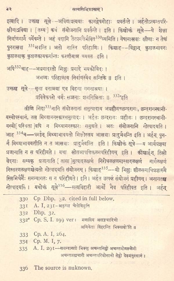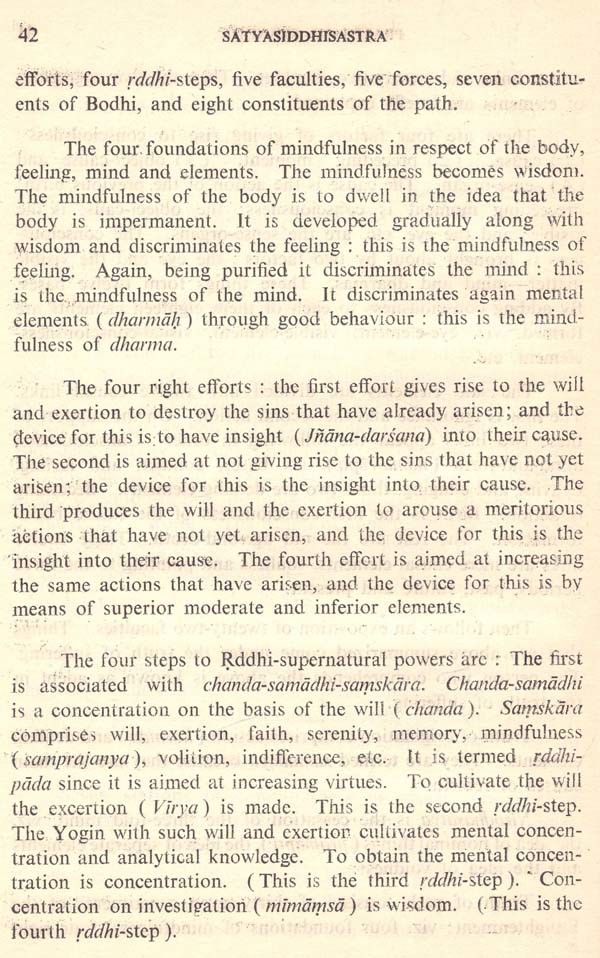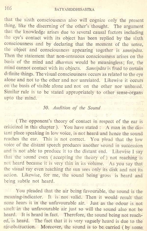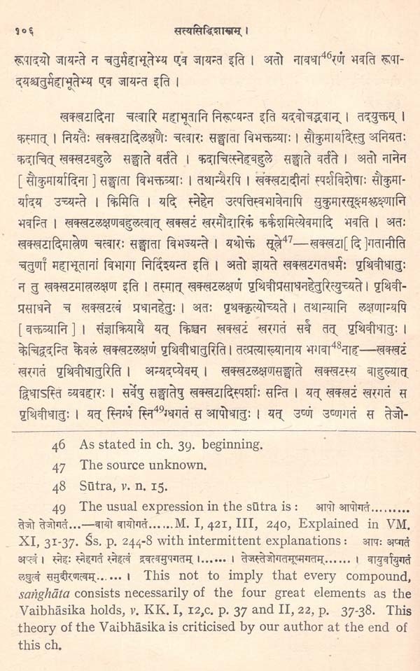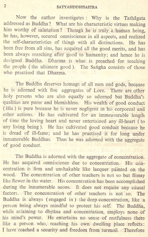 Acarya Harivarman's SATYASIDDHI has been evaluated by Orientalists as one of the priceless treasures in Indian literature. Since the original Sanskrit of this invaluable treatise has been perished forever leaving behind an imperfect replica into Chinese translation we have to fall back upon this translation for an appraisal of its entire contents. The Chinese translation was made by Kumara- jiva in 412 A.D. and fortunately has been preserved in the collection of Chinese Tripijaka (v. Nanjio No. 1274). The present Sanskrit rendering from the only Chinese translation of the treatise was undertaken by the present writer as a part of research work under the scheme of Cultural Fellowship sponsored by the Nationalist Government of China in 1945 under the auspice of the Visva Bharati. The Chinese text that I have used here is one published by the Sutra Engraving Institute, Nanking corresponding to the Taisho Edition, Vol. 32, No. 1666, pp. 239 ff.