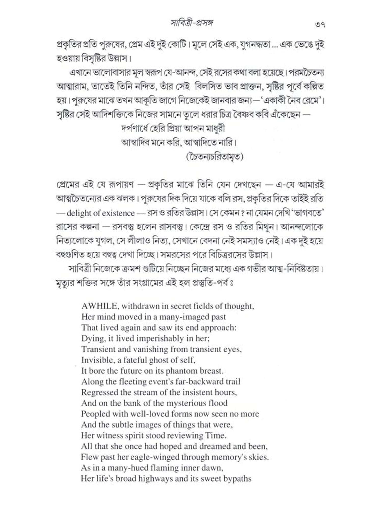 সাবিত্রী-সত্যবান প্রেম: Savitri-Satyavan Prema (Based on Sri Aurobindo's Epic Poem 'Savitri', the Book of Love) Bengali