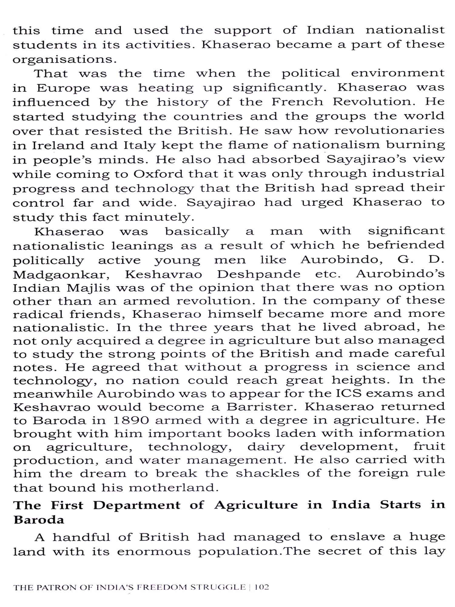 The new book, 'Sayajirao Gaekwad, the Patron of India's Freedom Struggle' is one more golden page in the history of Indian struggle for independence that lay buried in the annals of history and was ignored by researchers totally. In the pre-Independence India, there were more than 565 princely states, both big and small. Most of the rules of these states were too engrossed in keeping their thrones and lifestyles intact and accepting a subordinate status vis a vis the British rulers. It was Sayajirao alone who openly supported and helped the national movement and aided the revolutionaries in different ways. Writes G S Sardesai, popularly known as Riyasatkar Sardesai, an eminent historian from Maharashtra who worked long with Sayajirao, "He fought the British Government with utmost courage all his life." However, this history was never brought forth.