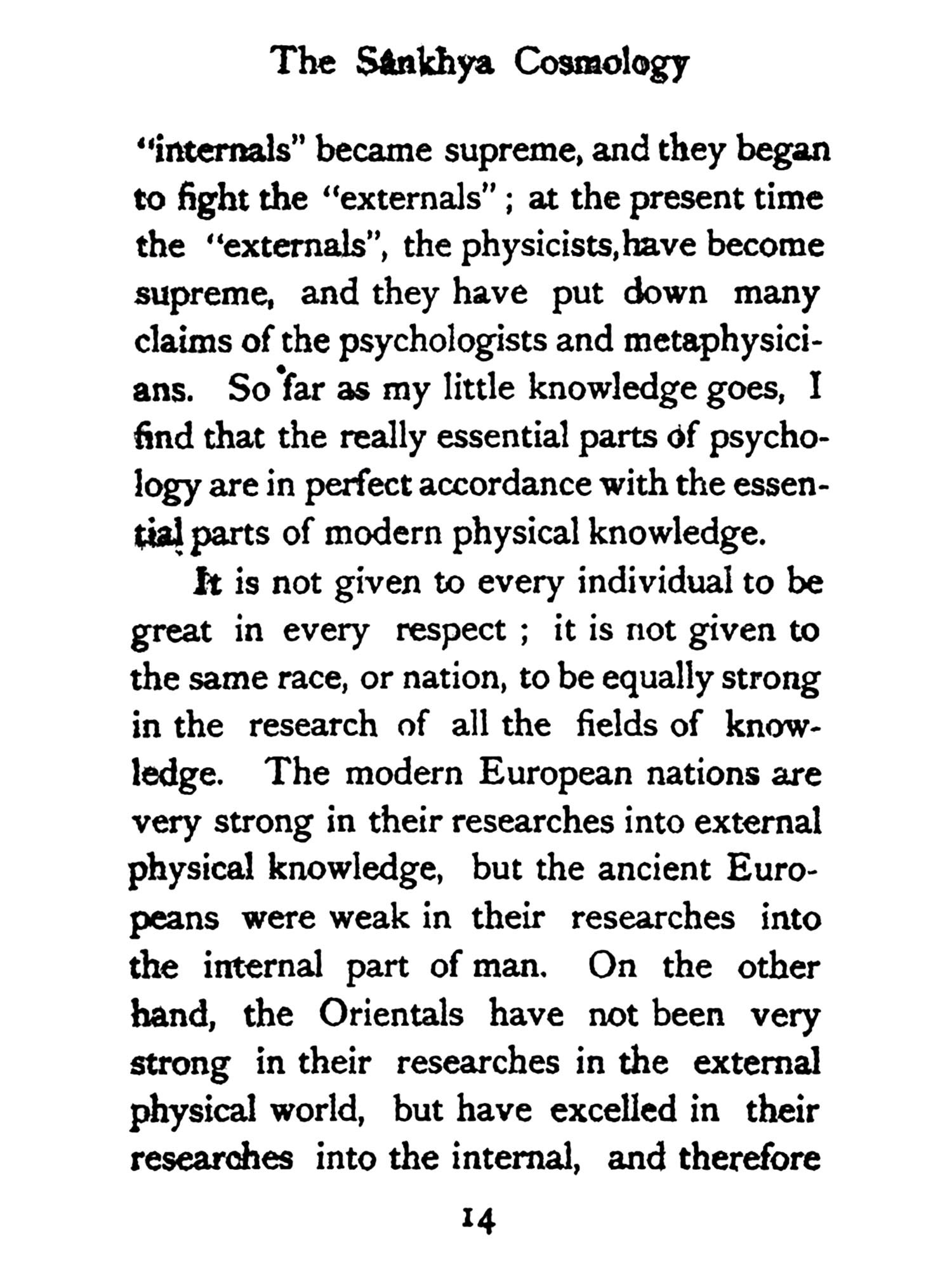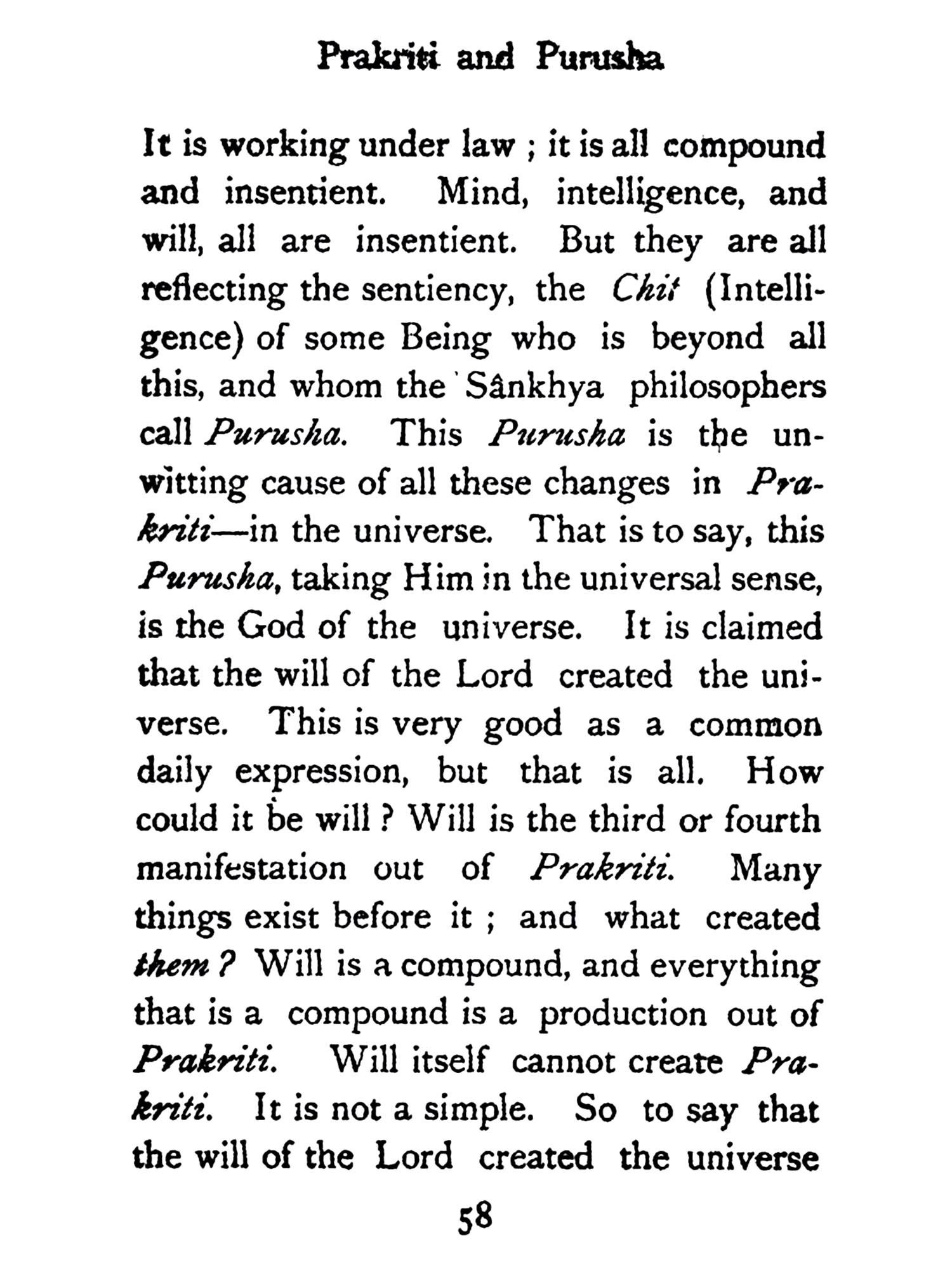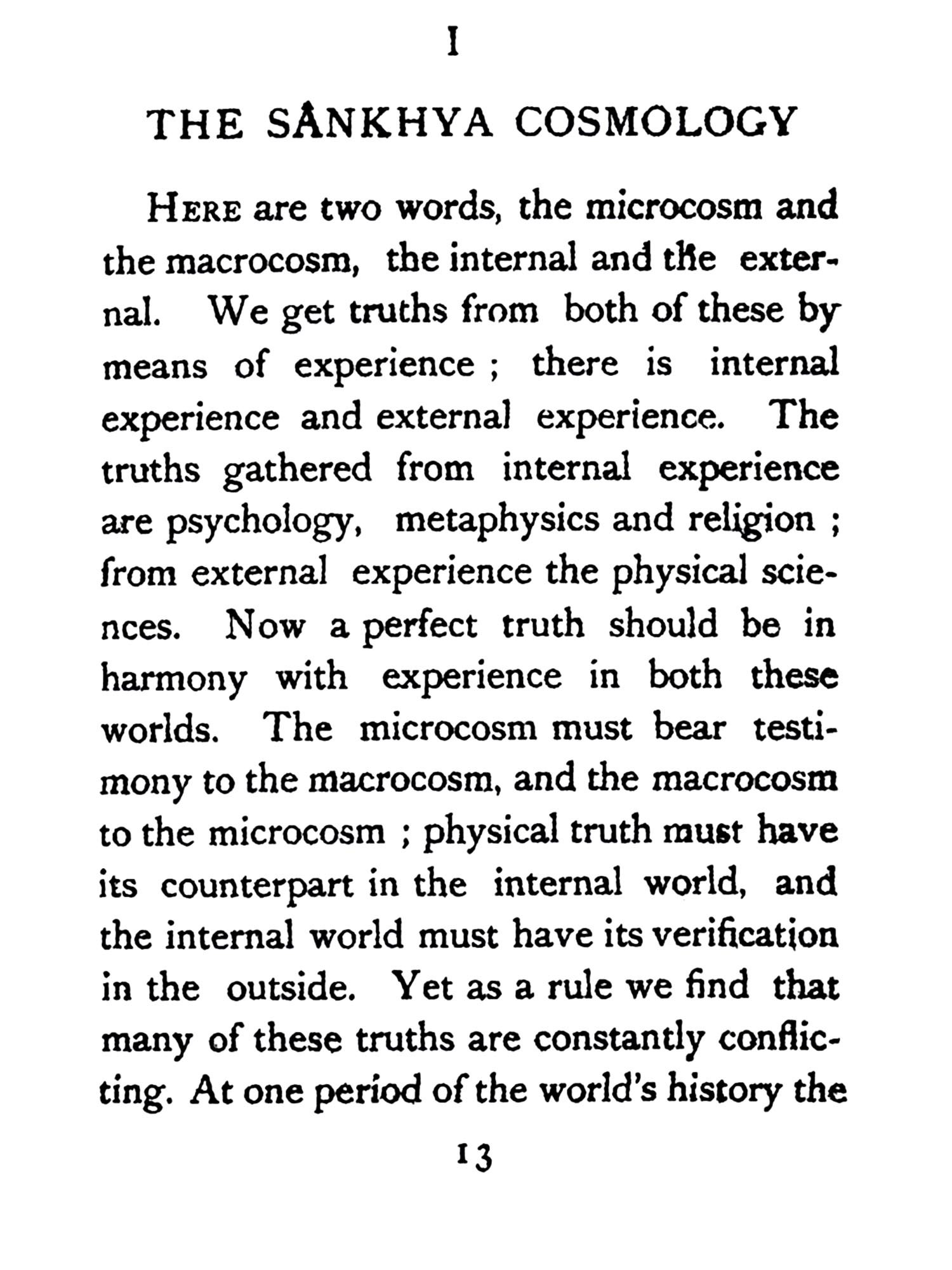 In these lectures I shall try to bring before you the Hindu theory that religions do not come from without, but from within. It is my belief that religious thought is in man's very constitution, so much so that it is impossible for him to give up religion until he can give up his mind and body, until he can give up thought and life. As long as a man thinks, this struggle must go on, and so long man must have some form of religion. Thus we see various forms of religion in the world.