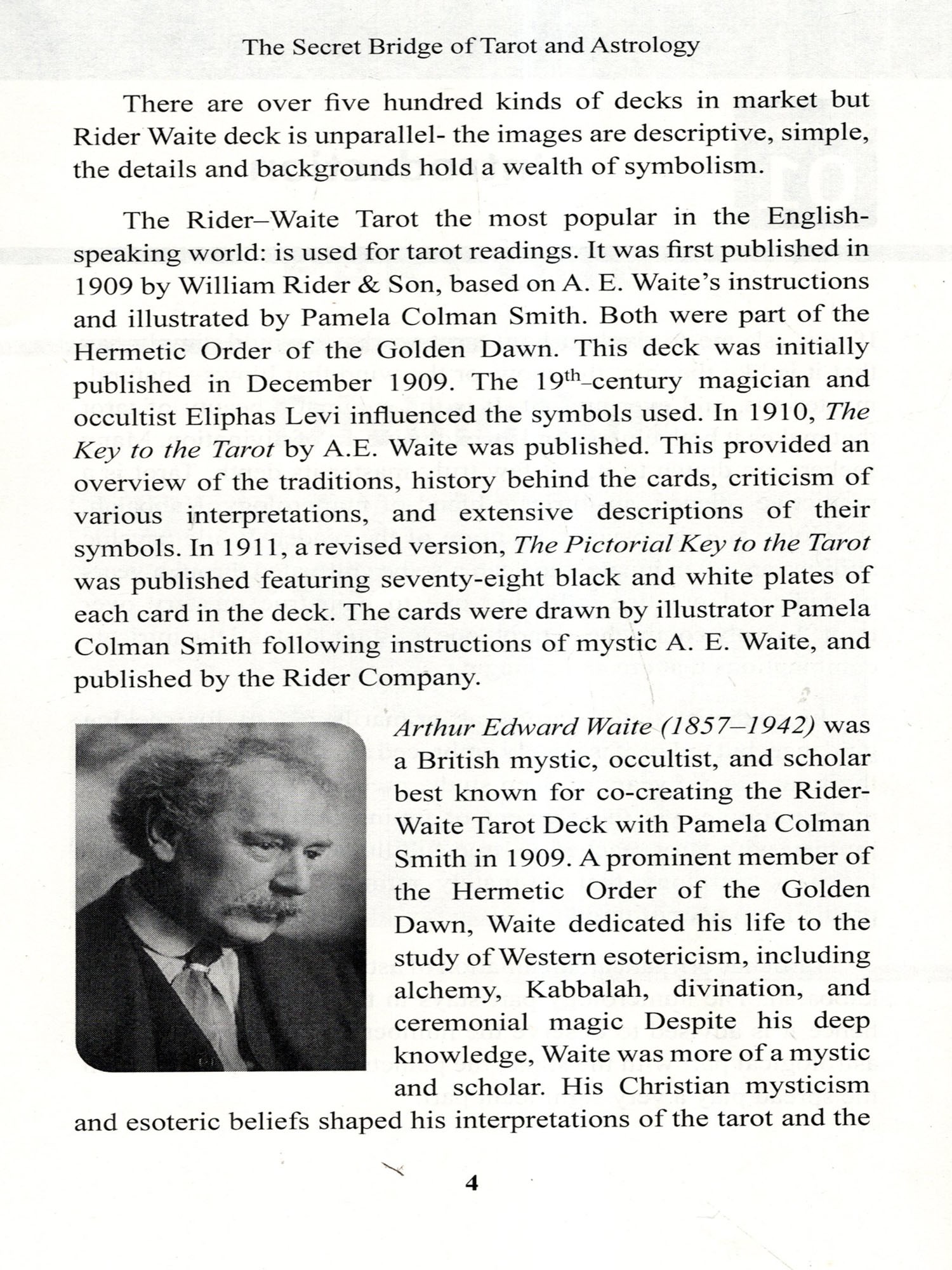 Tarot originated in the Western world, sparking debate between historians and card readers about its true origins and purpose. By the mid-18th century, its mystical applications had spread beyond Italy, gaining popularity across Europe. For a long time, the adepts felt that the true meaning should not be revealed to the common man to prevent misuse. It was Arthur Edward Waite (2 October 1857-19 May 1942), commonly known as A. E. Waite, an American-born British poet and scholarly mystic who brought tarot to the common man. The deck spoke a lot about the pictures but the symbols spoke about astrology, the true secret. Having studied astrology, I found the hidden connections between planets, signs, and constellations within tarot cards.