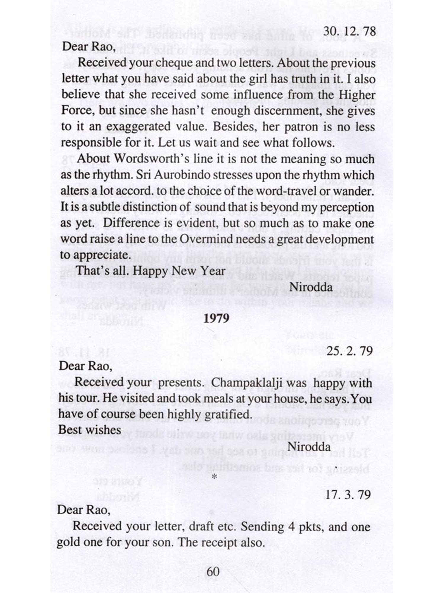 We hope that this collection of letters will be of great interest to all seriously engaged with their Sadhana on the path shown by Sri Aurobindo and the Mother. We begin with this selection and hope to compile many more letters of Nirodbaran written to hundreds of his friends and devotees over the years. Friends may send their collection of letters to the compiler of this volume.