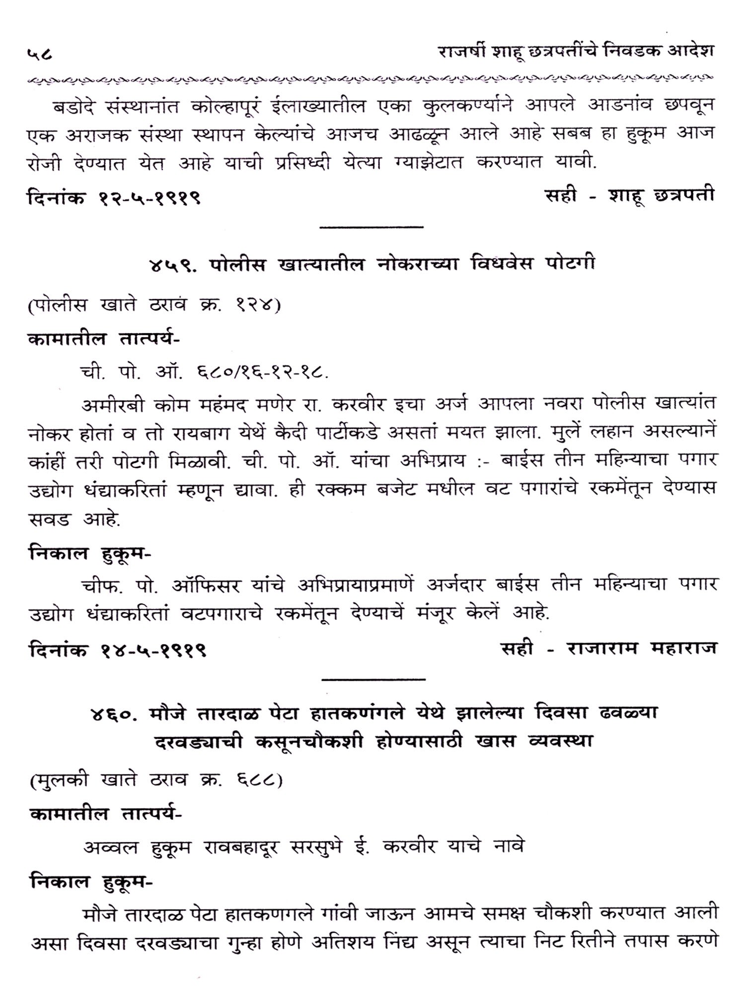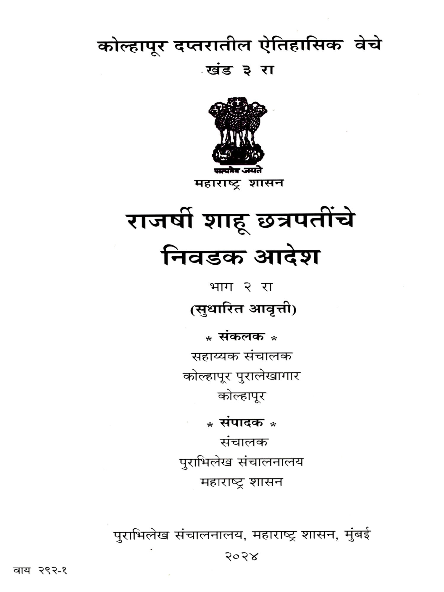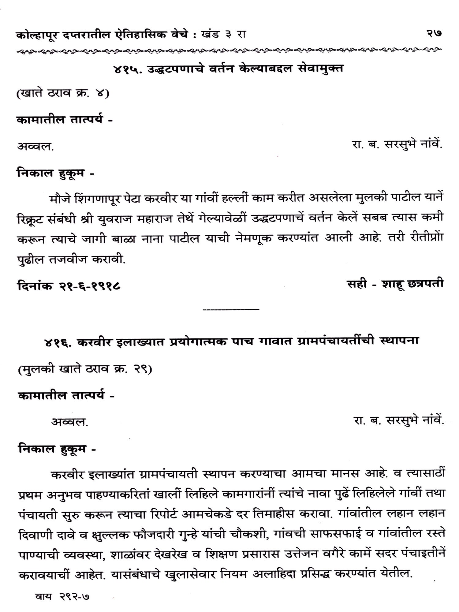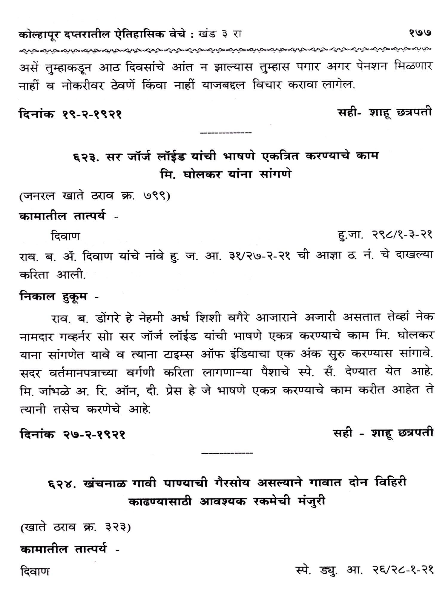 Selections from the Satara Raja's and the Peshawa's Diaries, 1- Shahu Chhatrapati (Marathi) (Photostat)