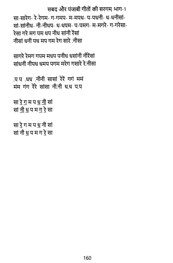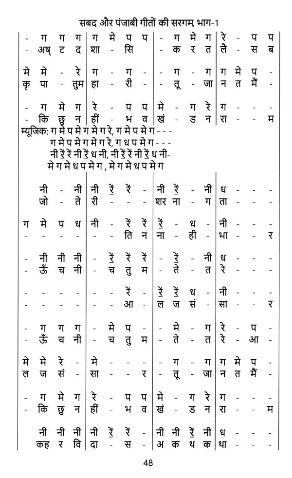 पंजाबियाँ दी शान दुनिया विच वखरी है. पंजाबी शबद गाते हैं तो सारे भक्ति रस में डूब जाते है और जे पंजाबी धुनां ते पंजाबी गीत गांदे ने ते सारी दुनिया उनके साथ नचदी है गांदी है. इस पुस्तक में कुछ सबद की सरगम और अनेक प्रसिद्ध पंजाबी गीतों की सरगम दी गयी है जिसकी मदद से संगीत का प्रारंभिक विद्यार्थी भी बड़ी आसानी से गीत गा वजा सकदा है. हिंदी भाषा में यह किताब सारेयां नूं खुशी प्रदान करन विच सहायक होवेगी. ये अनोखी पुस्तक संग्रह करने योग्य है|