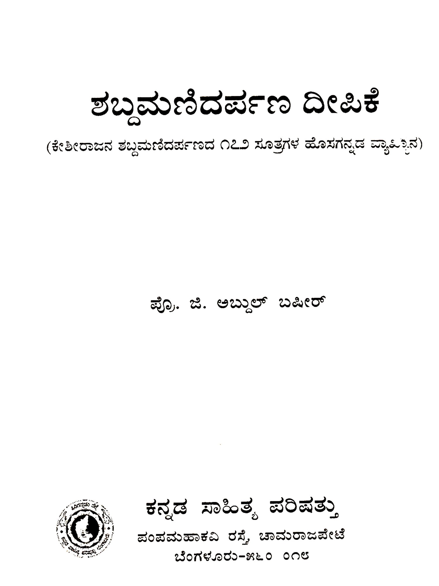 | Publisher: Kannada Sahitya Parishattu, Bengaluru | |