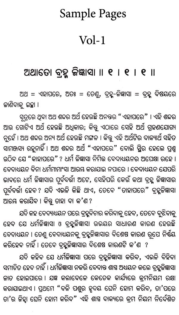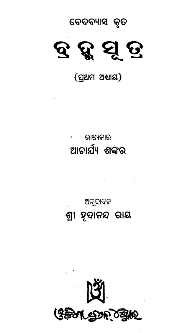 ବ୍ରହ୍ମସୂତ୍ର ଶାଙ୍କରଭାଷ୍ୟ: Brahmasutra Shankarabhasya in Oriya (Vol-1)