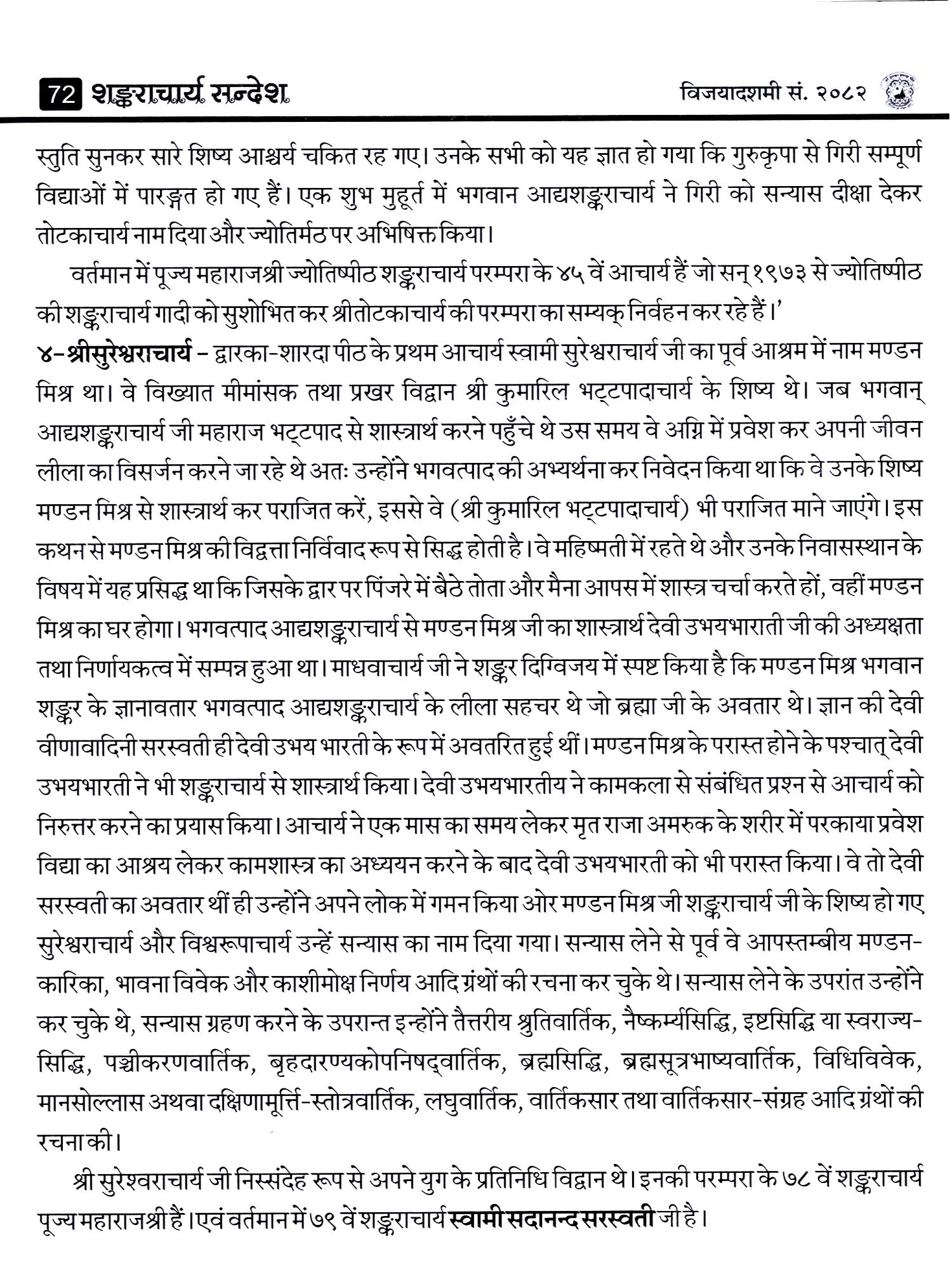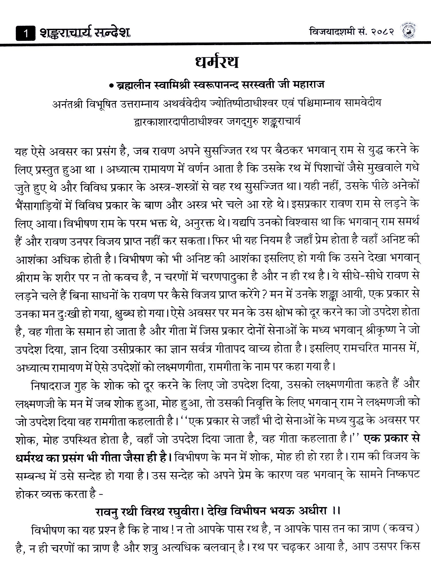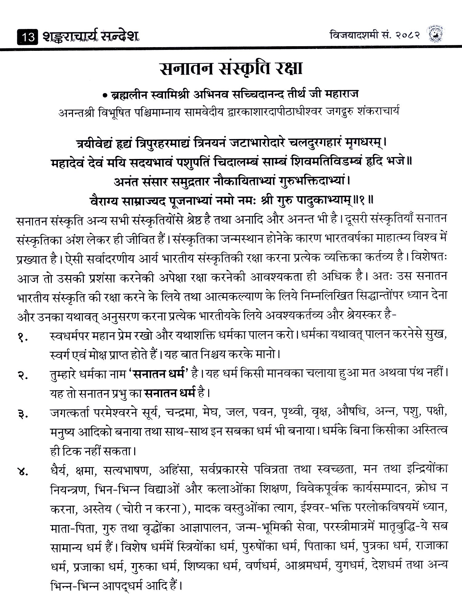 शङ्काचार्य सन्देश: Shankaracharya Sandesh- Vikram Samvat 2082: Vijaya Dashami Special Issue