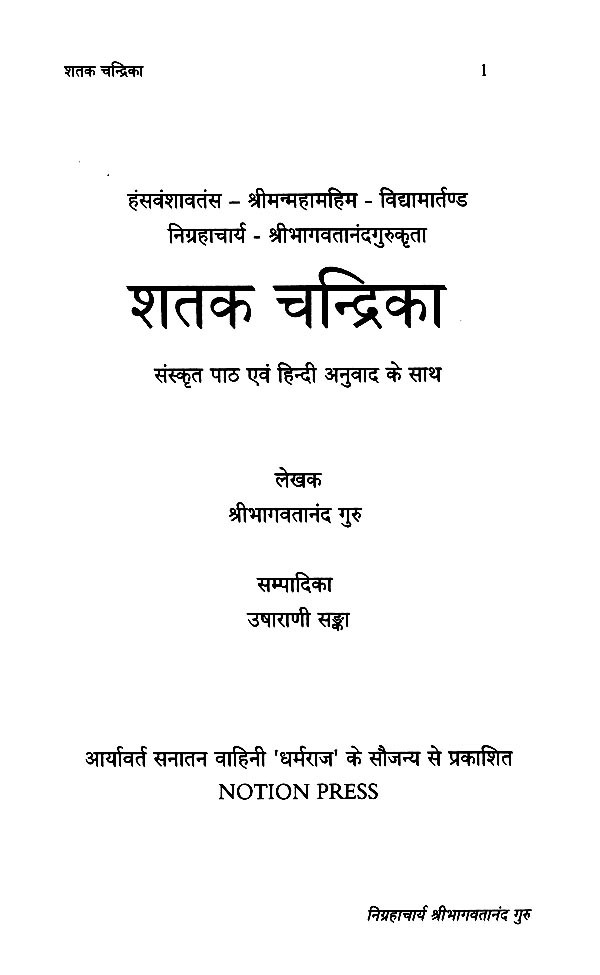 श्रीनिग्रहाचार्यविरचिता शतक चन्द्रिका (मूल संस्कृत पाठ एवं हिन्दी अनुवाद सहित): Shataka Chandrika by Srinigrahacharya (With Original Sanskrit Text and Hindi Translation)