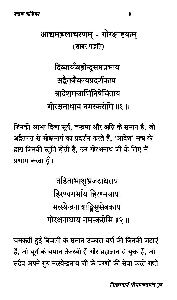 इस ग्रन्थ की पीठिका में ग्रन्थलेखन का प्रयोजन स्पष्ट है तथा आदि एवं अन्त में भगवान् गोरक्षनाथ की अपरिमार्जित शाबर शैली निग्रहाचार्यकृत संस्तुति सम्मिलित की गयी है। मैं आशा करती हूं, ऐसे और भी शास्त्रीय रहस्यों से परिपूर्ण काव्य लिखने की शक्ति-सामर्थ्य एवं इच्छा इनके मन में होती रहे और यह हमारे लिए पारायण योग्य ऐसे ग्रन्थों की सृष्टि करते रहें।