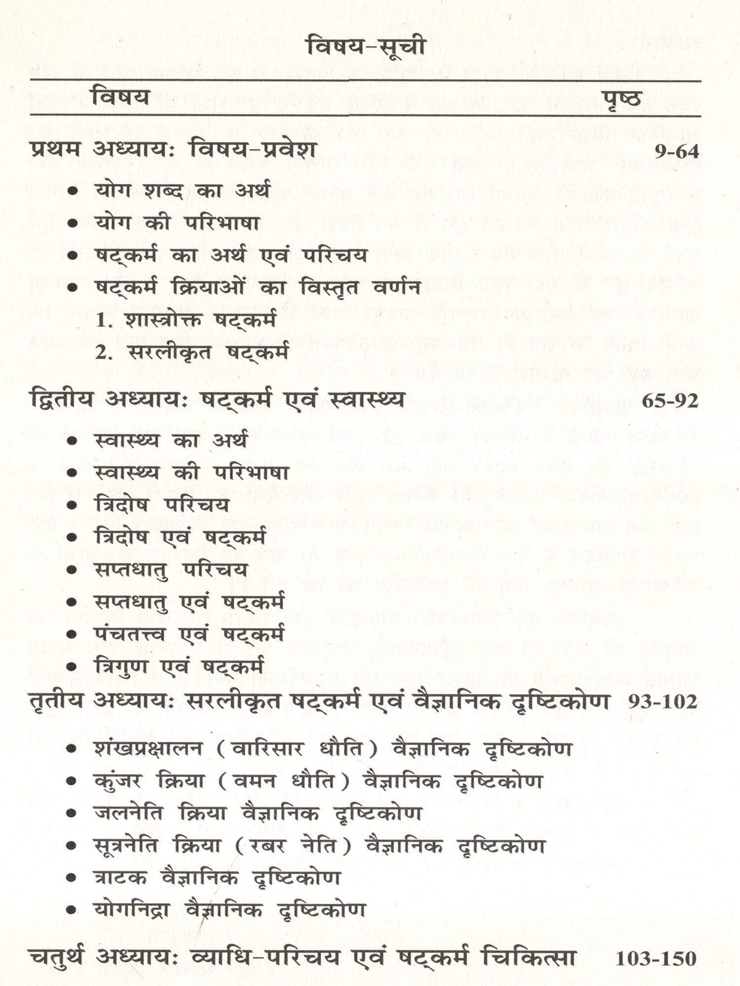 उपर्युक्त सभी बातों की चर्चा के साथ-साथ इस ग्रन्थ में षट्‌कर्मों के वैज्ञानिक प्रभावों के ऊपर भी विचार किया गया है। हमने विभिन्न रोगियों के ऊपर चिकित्सा करते समय उनके शारीरिक संस्थानों के ऊपर उनकी व्याधियों के निवारण का विभिन्न प्रयोगों के माध्यम से जो निष्कर्ष प्राप्त किया उन सब तथ्यों का सरलीकरण कर इस पुस्तक में प्रस्तुत करने का प्रयास किया है। मुझे आशा है कि यह पुस्तक जहाँ योगसाधकों एवं जिज्ञासुओं के लिए उपयोगी सिद्ध होगी वहीं यह स्वास्थ्य-प्राप्ति की आशा रखनेवाले रोगियों के लिए भी बहुत ही लाभकारी होगी। मेरी इस पुस्तक को सकलित करने का यह प्रयास कितना सफल हुआ है यह तो पाठकगण ही निर्णय करेंगे।