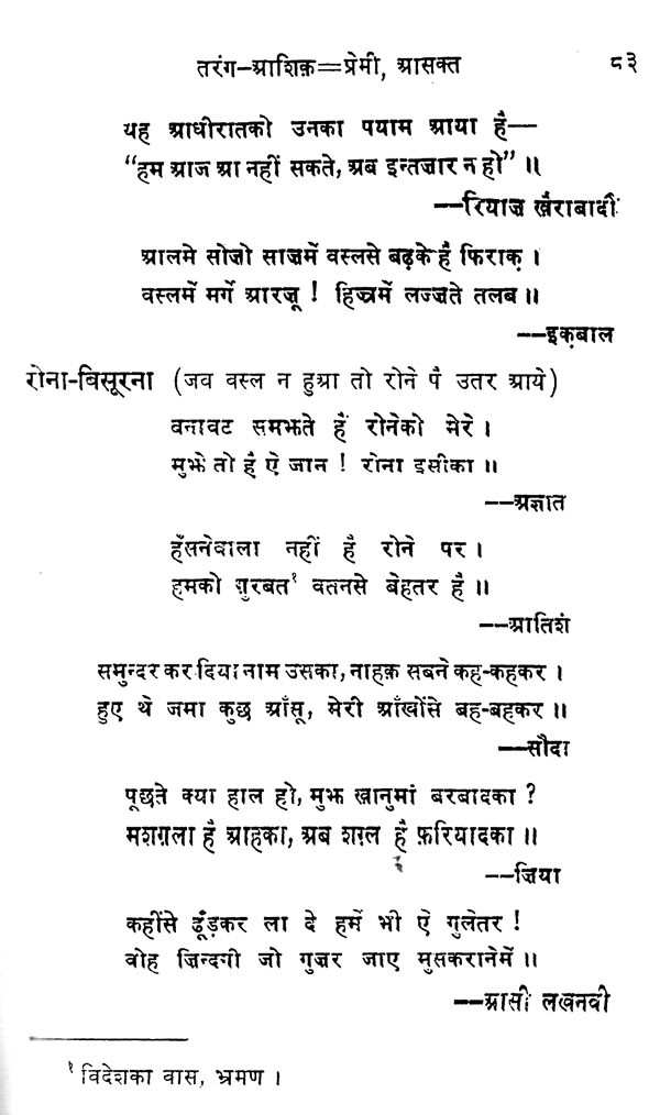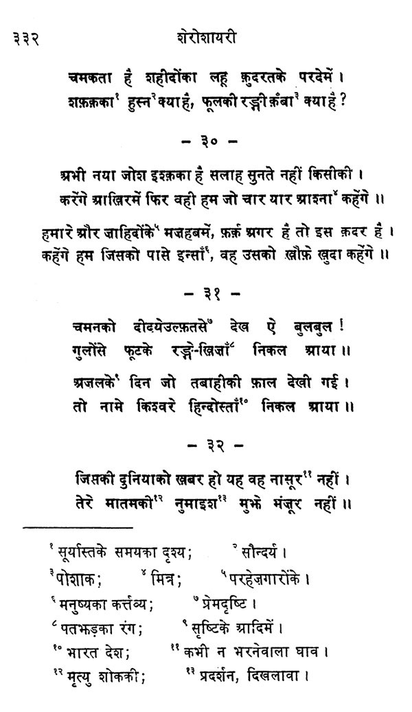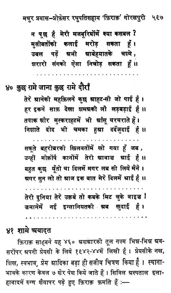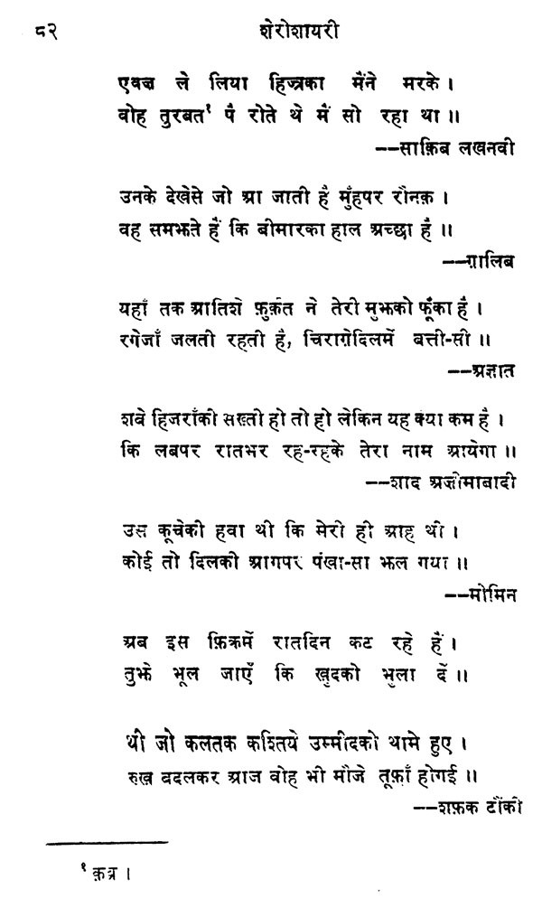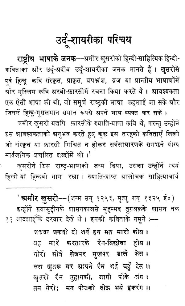 जनवरी १६४४ में मेरे परमहितैषी सहृदय दानवीर सेठ शान्तिप्रसादजी की अभिलाषा हुई कि उर्दू के कुछ सुभाषित उनकी डायरी में नोट करा दिए जाएँ। परन्तु डायरी में नोट करने का उनके पास समय ही कहाँ था? अतः बात आई गई हुई। किन्तु उनकी यह अभिलाषा मुझे भा गयी। वही प्रेरणा आज इस रूप में प्रस्तुत है। भारतीय ज्ञानपीठ के हिन्दी-विभाग के सुयोग्य विद्वान सम्पादक प्रियवर बाबू लक्ष्मीचन्द्र जी एम.ए. के साथ प्रातःकालीन सैर में शेरोशायरी की पुरलुत्फ़ चर्चाएँ रही हैं। पुस्तक का इतना मौजूं नाम भी उन्होंने ही सुझाया है। जब लिखने-पढ़ने से मन ऊब गया है, तब उन्हीं के प्रेमाग्रहों ने लिखने को बाध्य किया है। और अब वही इसे अपनी ग्रन्थमाला में प्रकाशित कर रहे हैं।