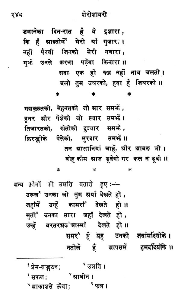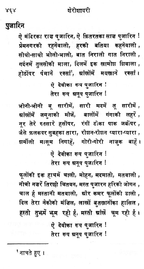 'शेर-ओ-शायरी' के छह सौ पृष्ठों में गोयलीयजी ने उर्दू कविता के विकास और उसके चोटी के कवियों का काव्य-परिचय दिया। यह एक कविहृदय साहित्य-पारखी के आधे जीवन के परिश्रम और साधना का फल है। हिन्दी को ऐसे ग्रन्थों की कितनी आवश्यकता है, इसे कहने की जरूरत नहीं। जितना जल्दी हो सके, हमें उर्दू के सारे महान् कवियों को नागरी अक्षरों में प्रकाशित कर देना है। गोयलीयजी का यह ग्रन्थ हिन्दी के उस कार्य की भूमिका है। हिन्दी-साहित्य-सम्मेलन शीघ्र ही उर्दू के एक दर्जन श्रेष्ठ कवियों के परिचय-ग्रन्थ निकालने की इच्छा रखता है, फिर हमें उनकी पूरी ग्रन्थावलियों को नागरी अक्षरों में लाना है। हमारे महाप्रदेश ने संस्कृतनिष्ठ हिन्दी को अपनी राज-भाषा स्वीकृत किया है, किन्तु उसका यह अर्थ नहीं, कि हमारे महाप्रदेश (युक्तप्रदेश, बिहार, महाकोसल, विन्ध्यप्रदेश, मालवसंघ, राजस्थानसंघ, मत्स्यसंघ, हिमाचलप्रदेश, पूर्व-पंजाब और फुलकिया संघ) की सन्तानों ने अपनी प्रतिभा का जो चमत्कार साहित्य के किसी भी क्षेत्र में दिखलाया है, उसे अपनी वस्तु के तौर पर प्ररक्षित करना हिन्दीभाषियों का कर्तव्य नहीं है। जिस तरह भाषा की कठिनाई होने पर भी सरह, स्वयम्भू, पुष्पदन्त, अब्दुर्रहमान आदि अपभ्रंश कवियों को हिन्दीकाव्य-प्रेमियों से सुपरिचित कराना हमारा कर्तव्य है; उसी तरह उर्दू के महाकवियों की कृतियों से काव्यरसिकों को वंचित नहीं होने देना चाहिए। व्यक्ति के लिए भी बीस-पच्चीस साल अधिक नहीं होते, जाति के लिए तो वह मिनट-सेकेण्ड के बराबर हैं। १६७०-७५ ई. तक अरबी अक्षरों में उर्दू-कविता पढ़नेवाले बहुत कम ही आदमी हमारे यहाँ मिल पायेंगे।