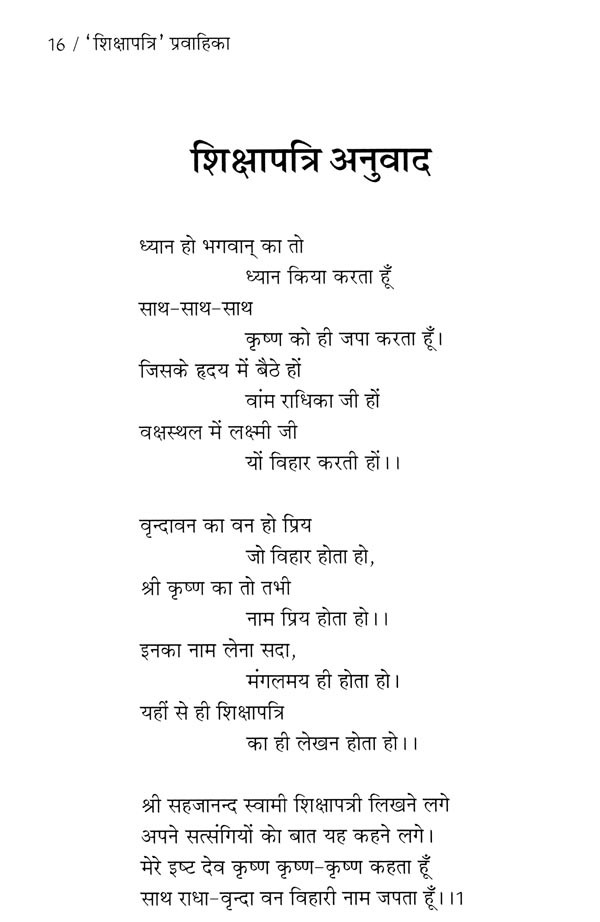 मुझे आशा है कि इस प्रवाहिका के साथ श्री स्वामीनारायण भगवान का नाम जुड़ा है इसका सदुपयोग हो तो मेरा प्रयत्न सफल समहूँगा। ग्रंथ का सारा निचोड़ 7 पद्यों में परिचय रूप में दे दिया है।