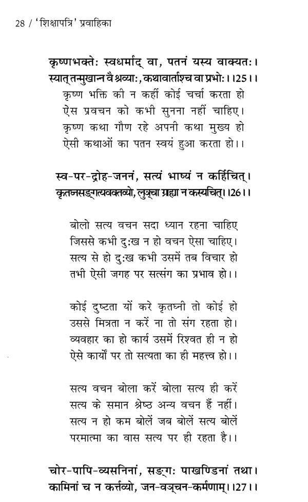 भारतीय षड्दर्शन, स्मृति, धर्मशास्त्र, नाटक, काव्य, चम्पू, कथायें तथा इतिहास के अनेकानेक उत्तुंग ज्ञान की उस परा पश्यन्ती के योगियों ने भारतीय बुद्धिजीवियों को बहुत आकर्षित किया, ऐसा विशाल यह वाङ्मय संपूर्ण रूप से सर्वत्र भरा ही दिखता है। इसी परम्परा में वीत राग संन्यासी, वैरागी, ज्ञानी भी अग्रिम पंक्ति से हटे नहीं बाँधे रखे इस महान परम्परा को, जिसे देखकर आज हम गौरव के साथ कह सकते हैं कि भारत के उन तत्व ज्ञानियों ने जो भी कुछ समाज के हित को ध्यान में रखकर लिखा, बड़े-छोटे जो भी ग्रंथ लिखे, उनमें एक लघुग्रंथ पत्रिका के रूप में नहीं 'पत्र' के रूप में प्रचलित हुई जिसे सारा संसार मुख्य रूप से सांस्कृतिक समाज स्वामीनारायण सम्प्रदाय 'शिक्षापत्रि' के नाम से जानता है।