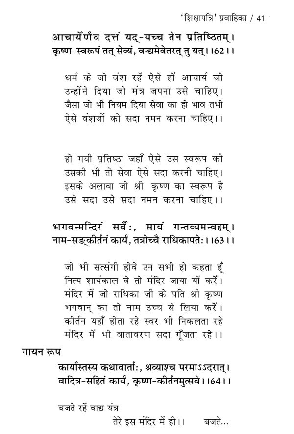 इसी परम्परा में न बहुत लम्बा न बहुत छोटा 212 श्लोकों की उपदेशात्मक पत्री गागर में सागर भरने का कार्य करती है। एक दिन इस पुण्य ग्रंथ को देखा तो विचार आया कि इस ग्रंथ का हिन्दी में पद्यानुवाद ही करूं, जो तैयार होकर आप सभी के समक्ष प्रस्तुत है भगवान् ने जो भी निर्देश दिये हैं हृदय से ग्रहण कर अपने जीवन में उतारना ही हमारा कर्तव्य है।