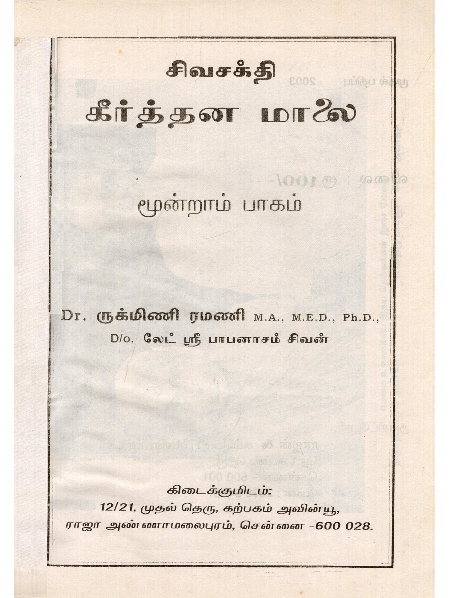 சிவசக்தி கீர்த்தன மாலை- Shiva Shakti Keerthana Mala: 51 Keerthanas (Part- 5: An Old and Rare Book in Tamil)
