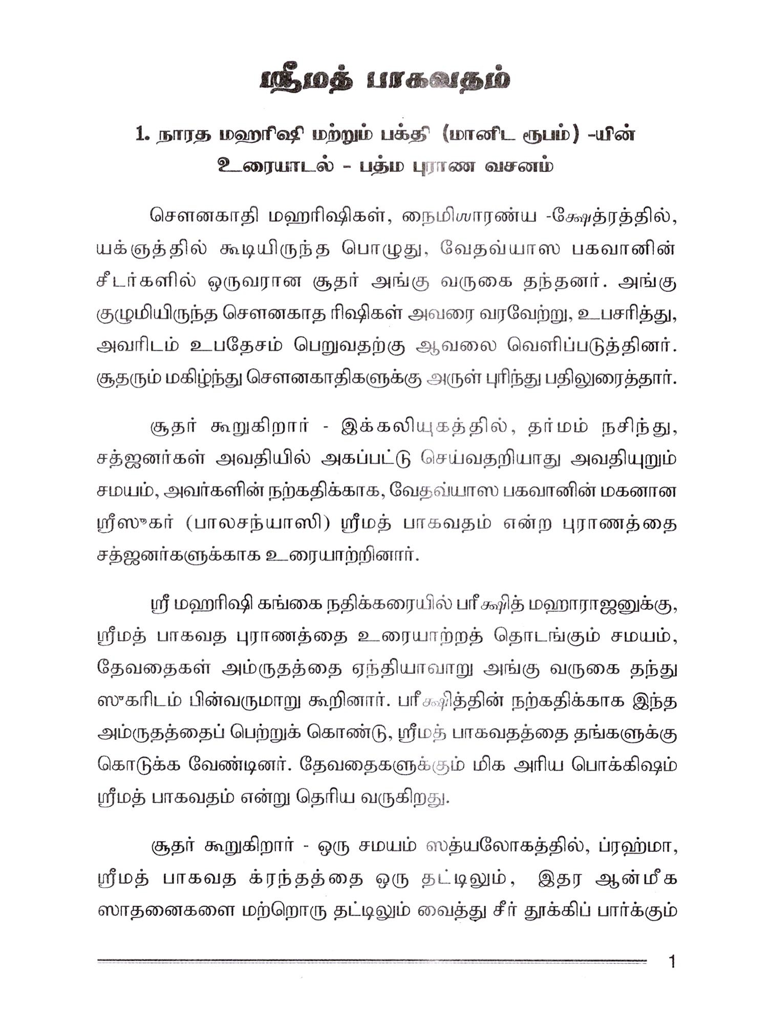 ஸ்ரீமத் பாகவத ஸாரம்- Srimad Bhagavata Saram in Tamil (Vol-1)