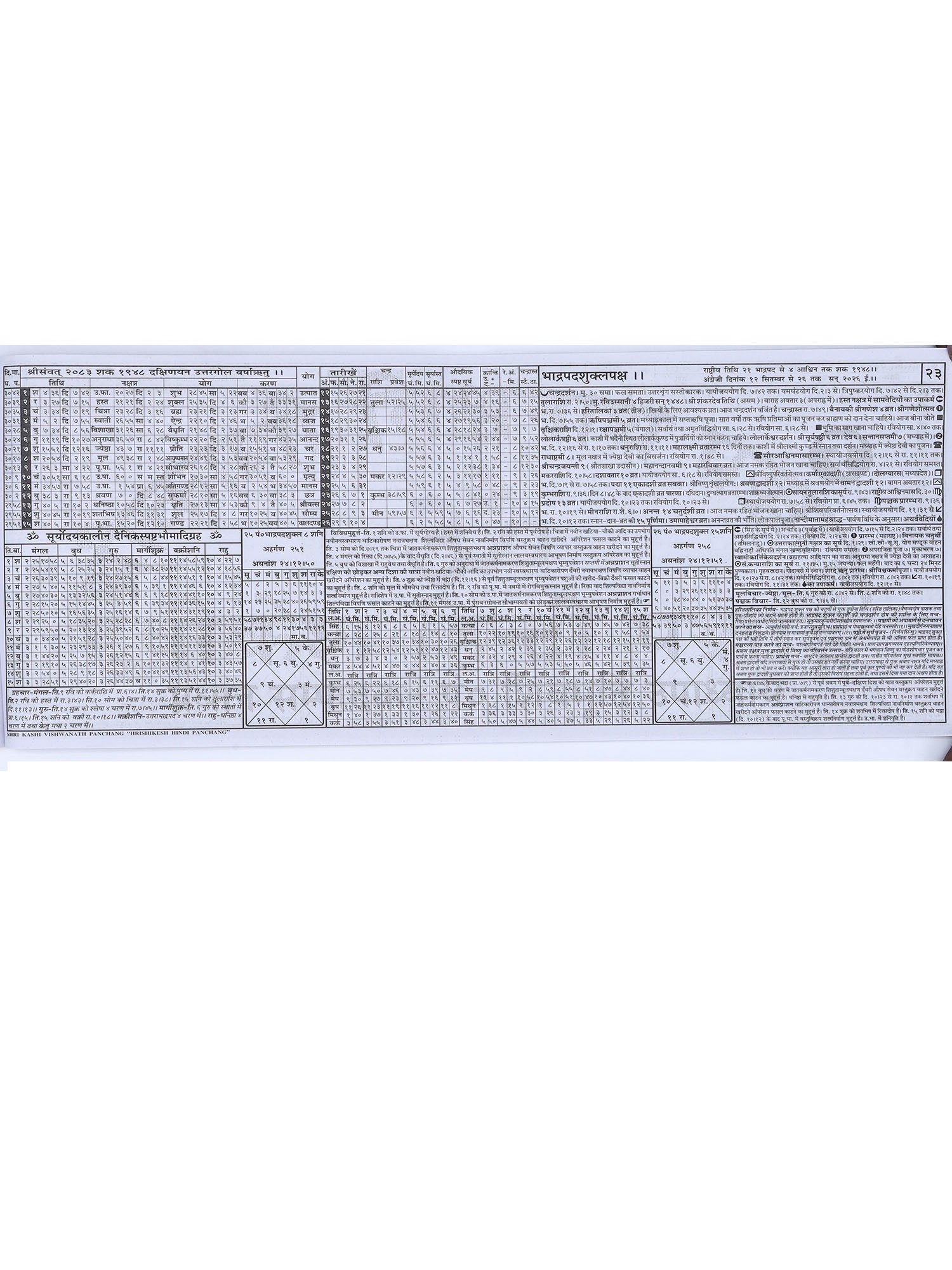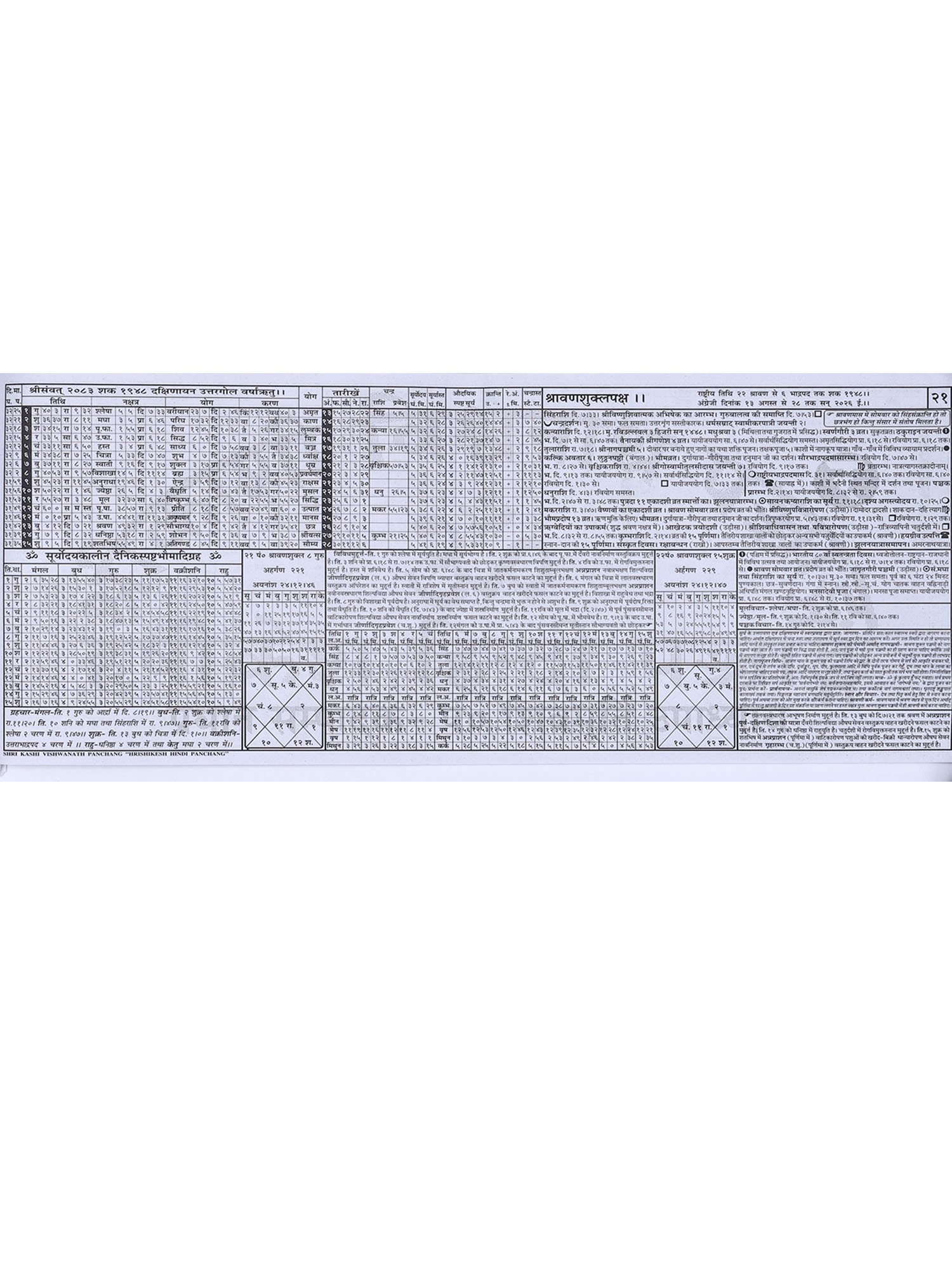 श्री हृषीकेश हिन्दी पञ्चाङ्ग- Shri Hrishikesh Hindi Panchang (2025-26)