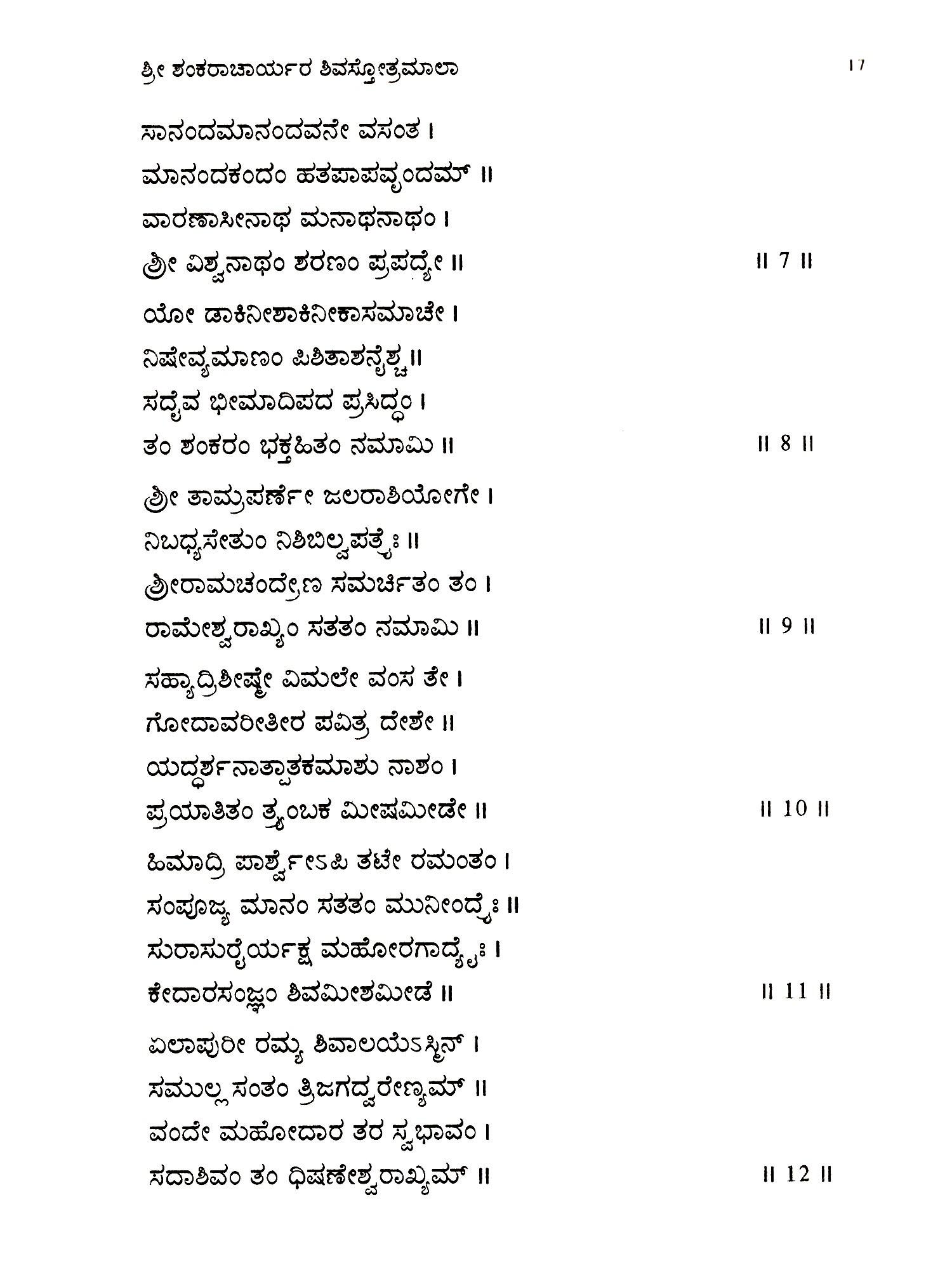 Sri Shiva Stotramala (Kannada)