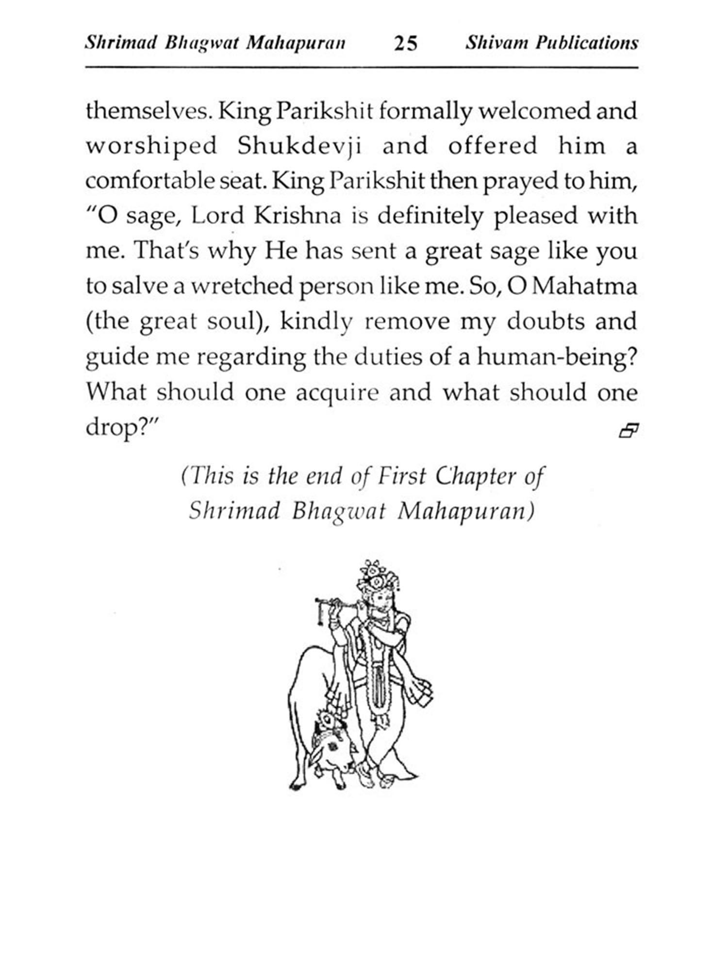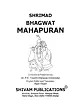 Created by Ved Vyas Srimad Bhagwat Mahapuran is an immortal heritage of the world's ancient literature. It is no less than ambrosia. Srimad Bhagwat is equally honoured by the learned ones, devotees, sages and the metaphysical researchers. Tales from the time of the beginning of creation to the Pralaya Kaal (The great deluge) have been skillfully interwoven in Srimad Bhagwat. Because of its unique, dialogue like presentation style, Srimad Bhagwat is an encyclopaedia in itself.