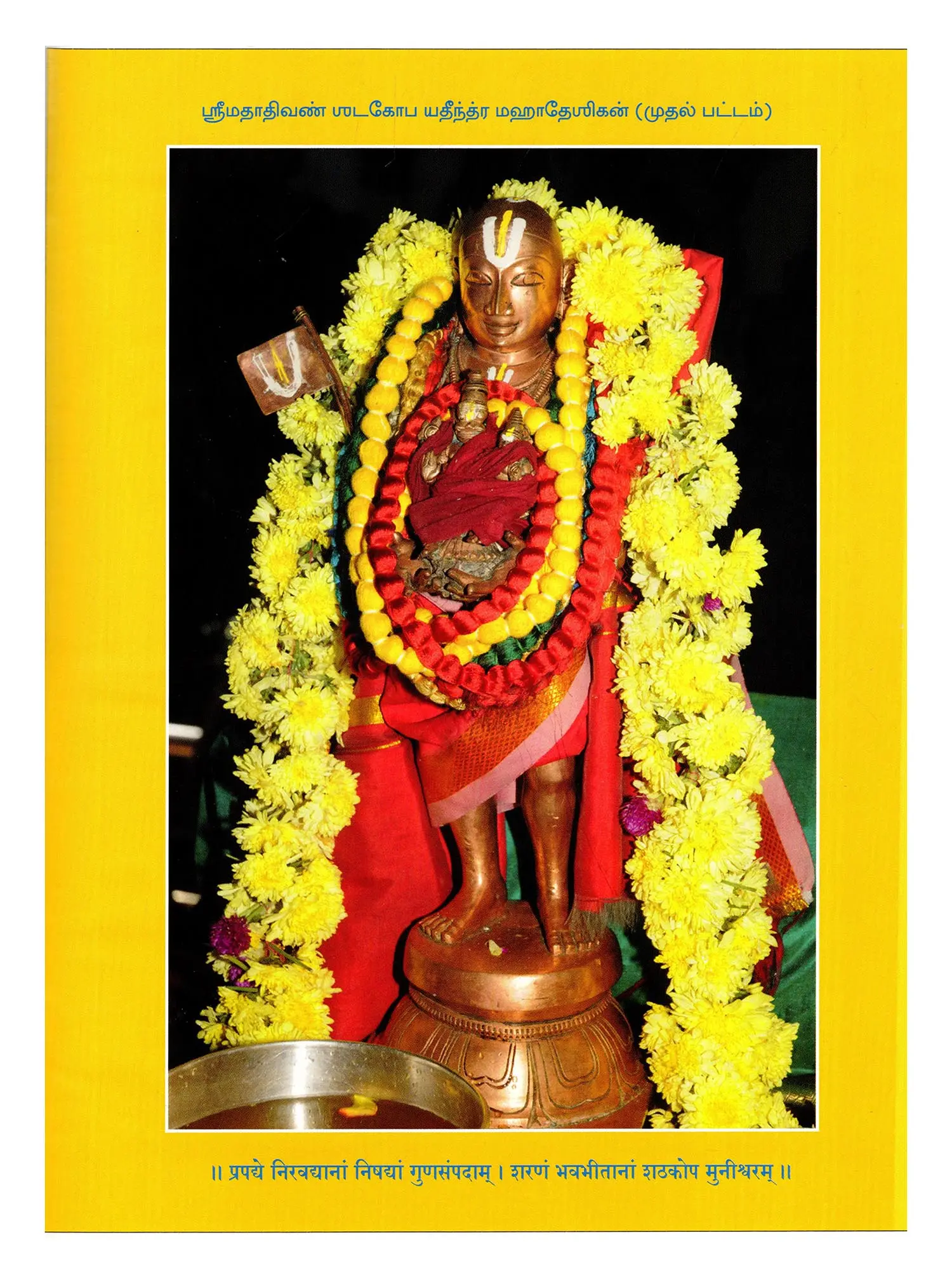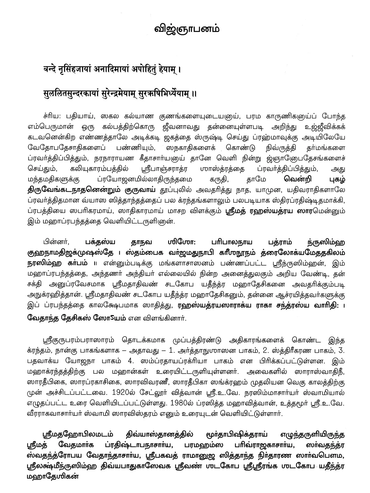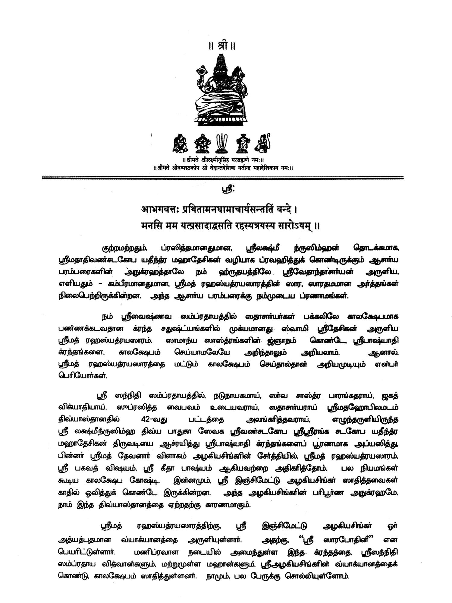 By the grace of Srimadhobilamatha, Srimadhobilamatha, Srimadvedamargapratishthapanacharya, Paramahansaparivrajakacharya, Sarvatantra, Swatantrobhayavedantacharya, Sribhagavadramanuja, Siddhantanirdharanasarvabhima, SrilakshmiNrishimha, divine-foot-servant, Srivandathakopa, Srirangashathakopayatindramahadeshika, by grace
